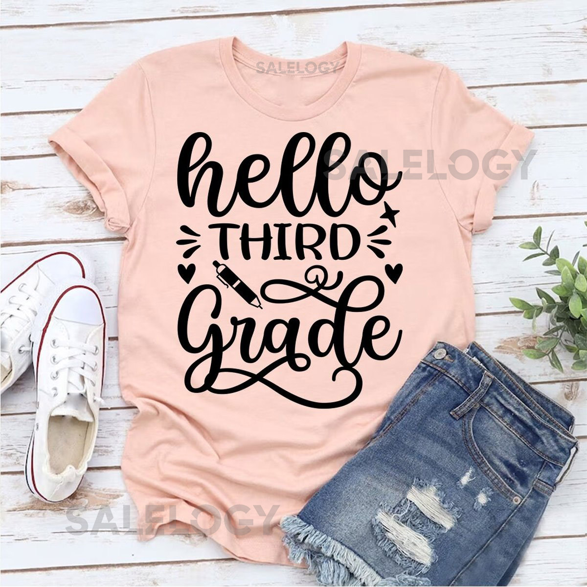 Hello Third Grade T-Shirt -Customized Graphic Unisex Tee -School Life -Milestone Tee -Educational Journey -Young Scholar-New Beginnings_467