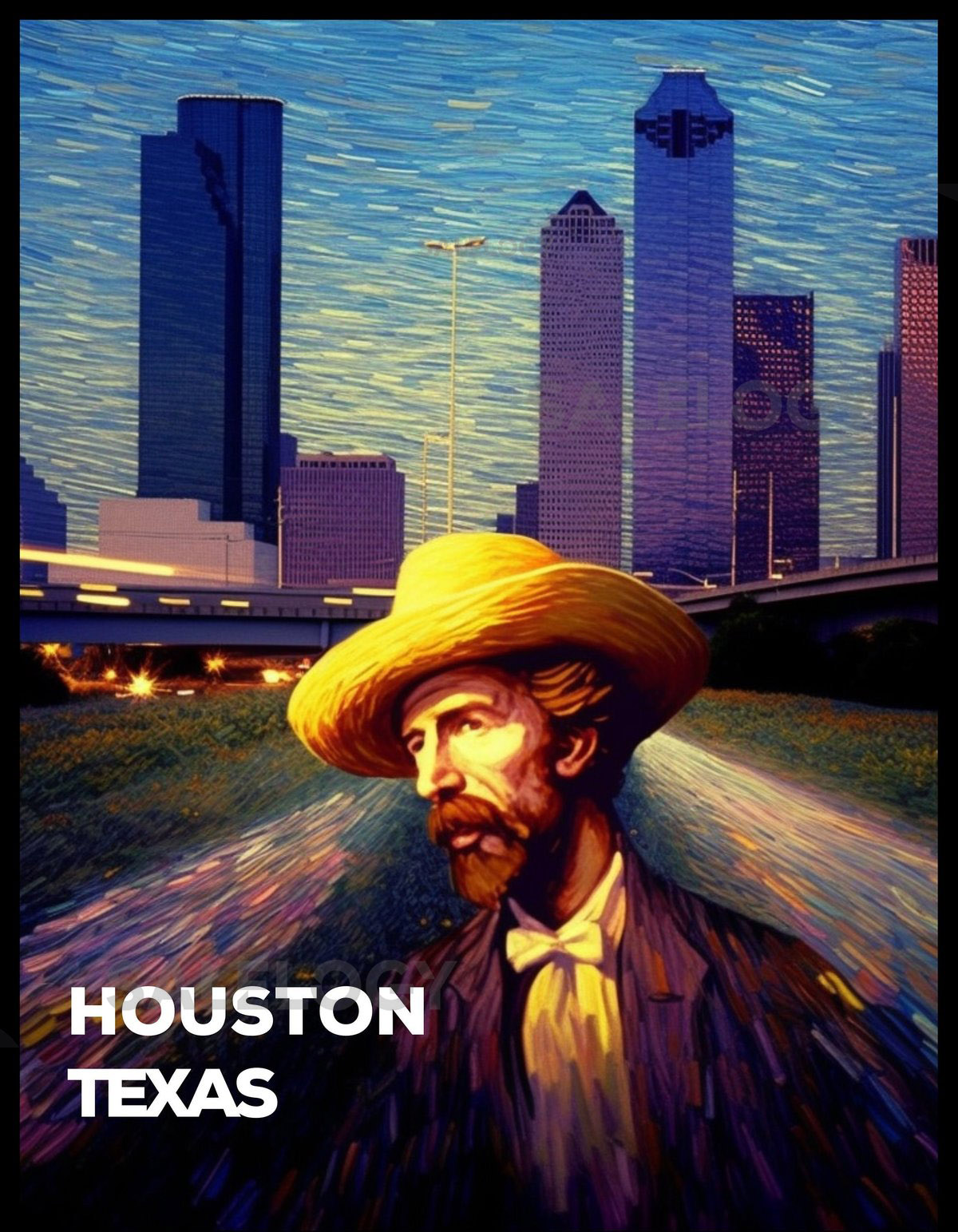 Houston Texas State Shirt Van Gogh Style Houston Texans tshirt Texas Gifts Houston Skyline T-shirt Game Day Shirt Traveler_367