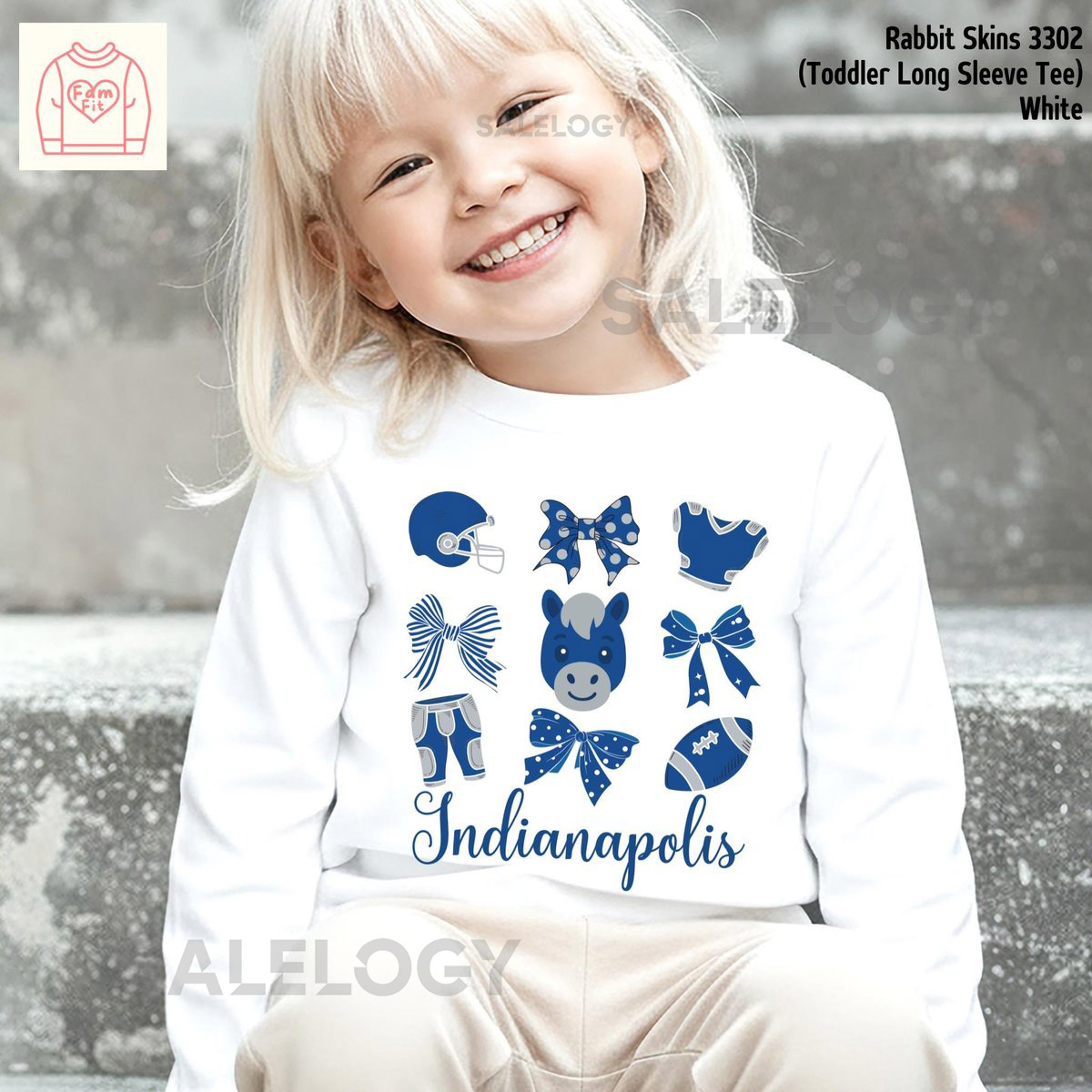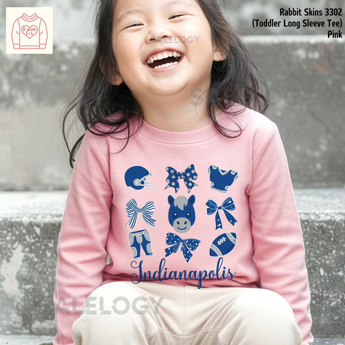 Indianapolis Colt Toddler Bow Long Sleeve Tee – Custom Short-Sleeve TShirt Personalized Coquette Shirts Famfi_450