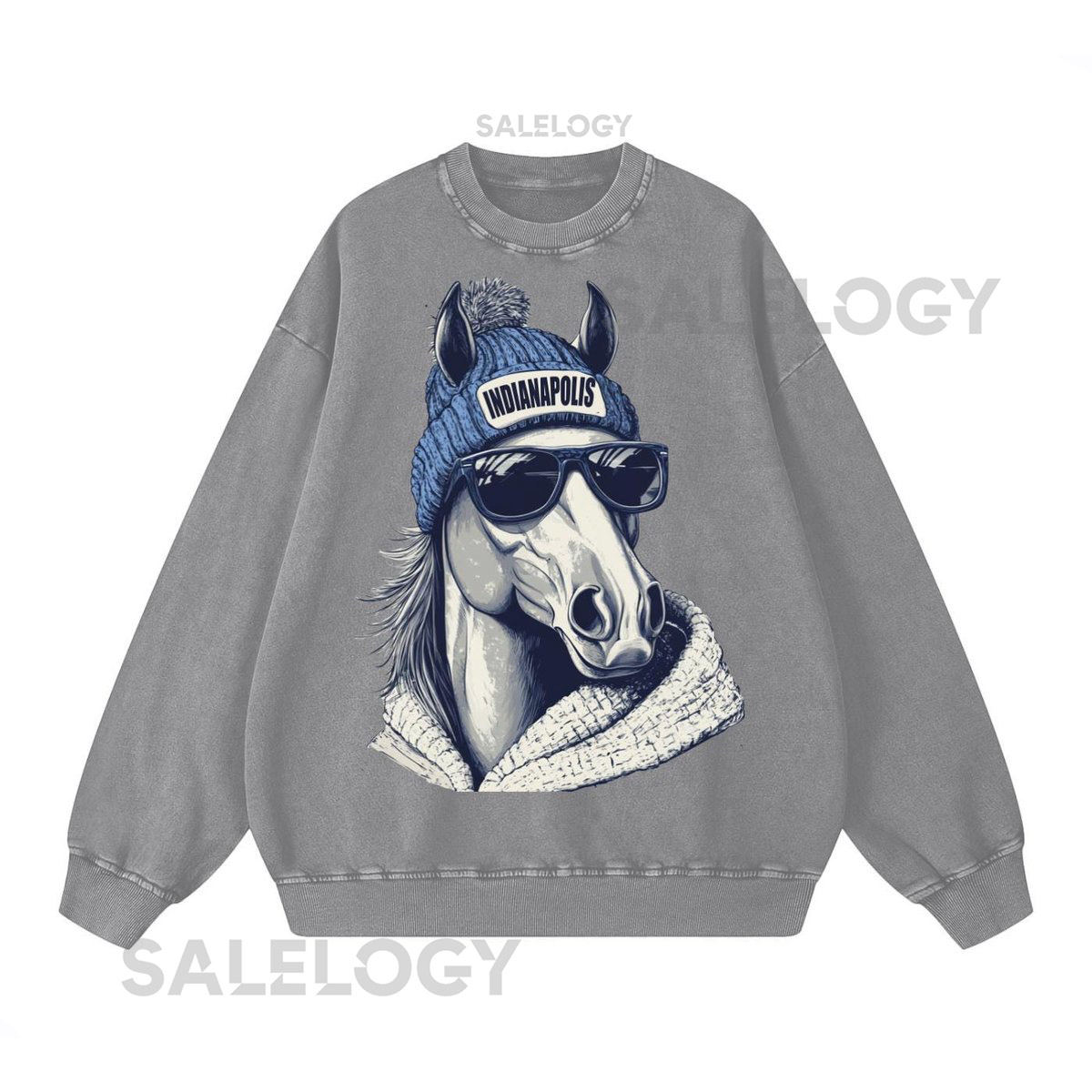Indianapolis Spirit Animal Sweatshirt Acid Wash Oversized Crewneck Game Day Sweater Football Cr_552
