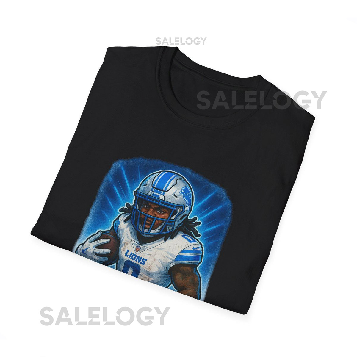 Jahmyr Gibbs Detroit Lions Caricature Unisex Softstyle T-Shirt Tee Shirt Football Fan Gift Sports Shirt Cowboys Apparel_517
