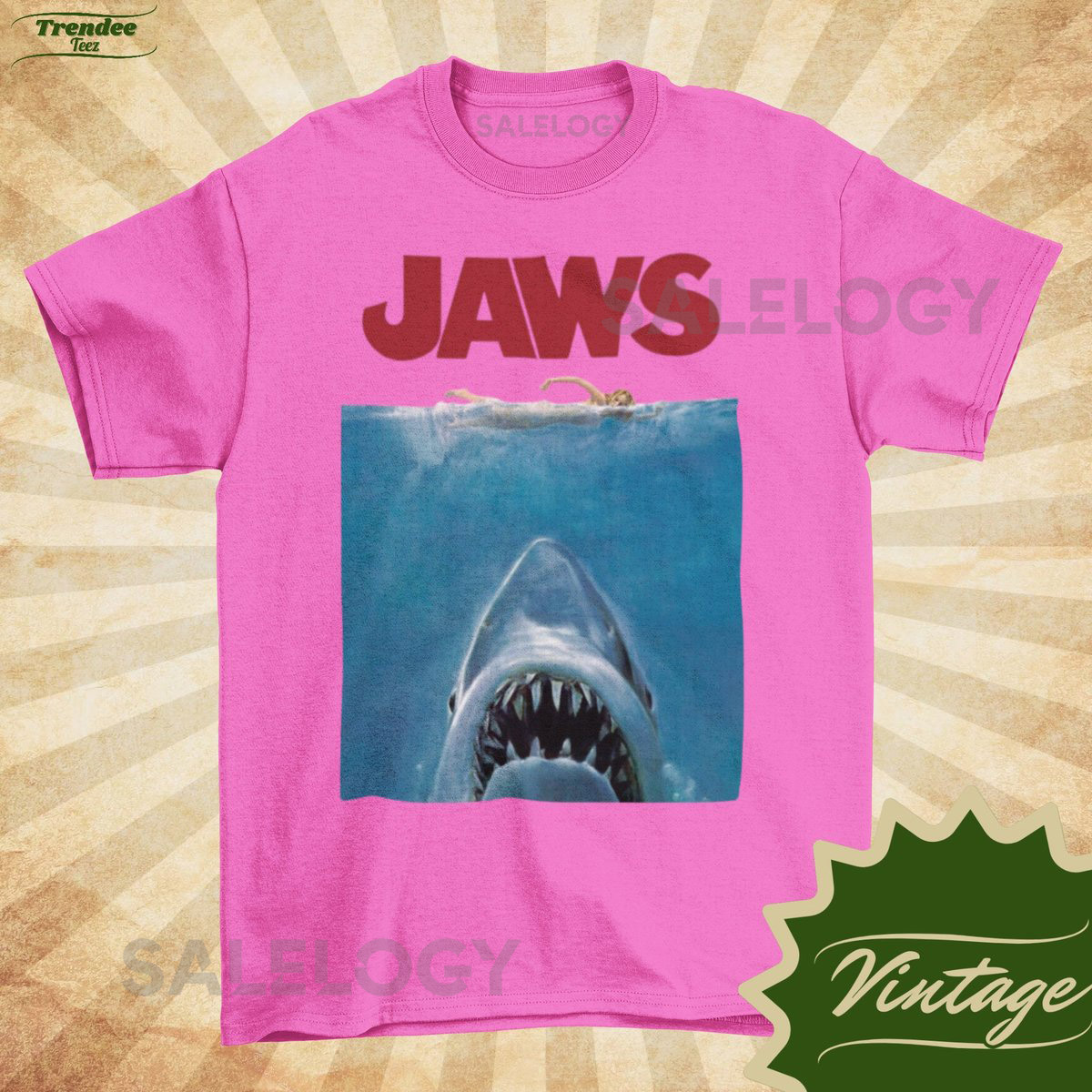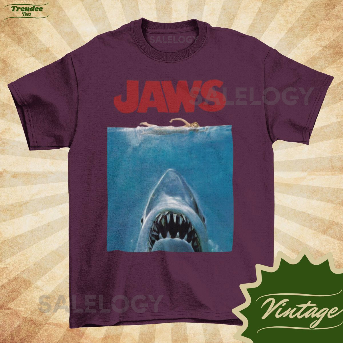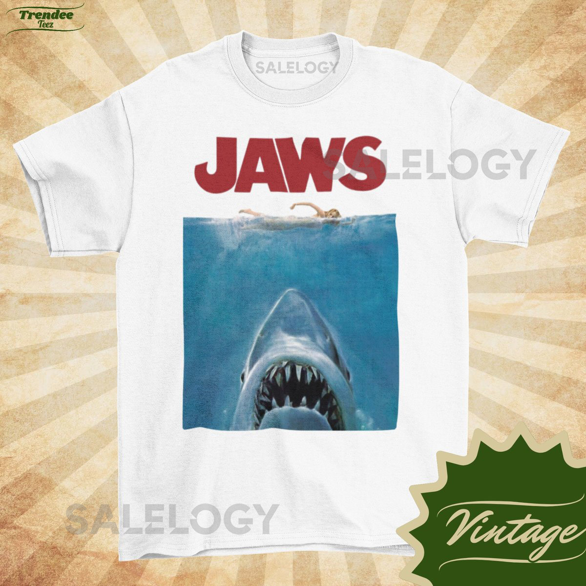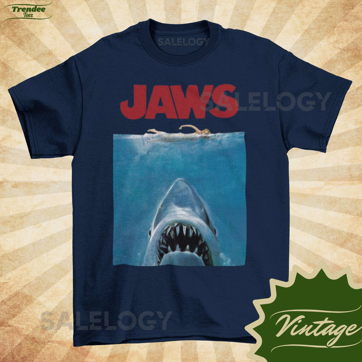 JAWS Classic – Vintage Style Natural Crewneck T-shirt – Unisex Movie poster shirt Sharkweek Shirt_143