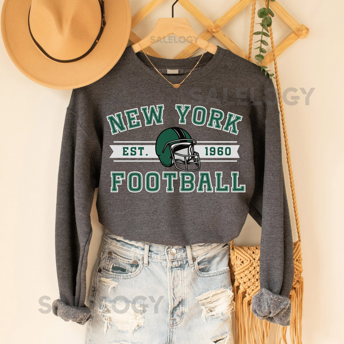 Jets Sweatshirt New York Football Crewneck Vintage Style Jets Sweatshirt Aaron Rodgers Sweatshirt Jets Crewneck_232
