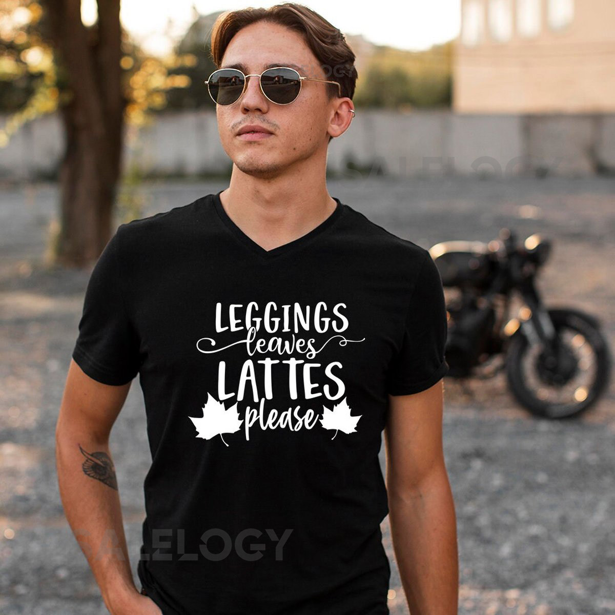 Leggings Leaves Lattes Please T-Shirt – Customized Graphic Unisex Tee – Fall Season – Fall Delights – Seasonal Joy – Coffee Lover_625