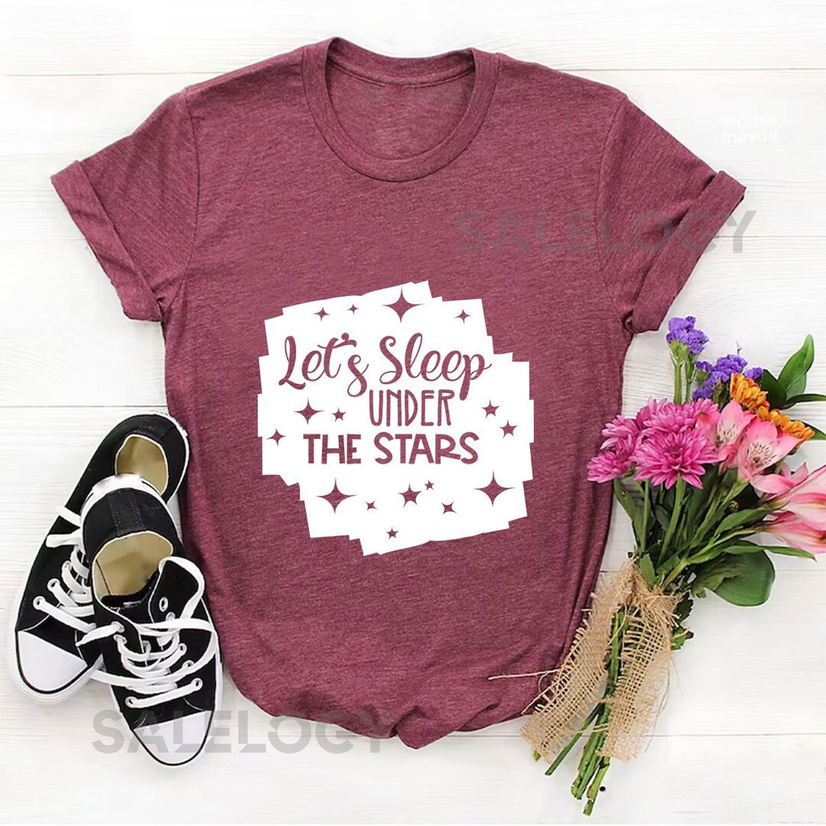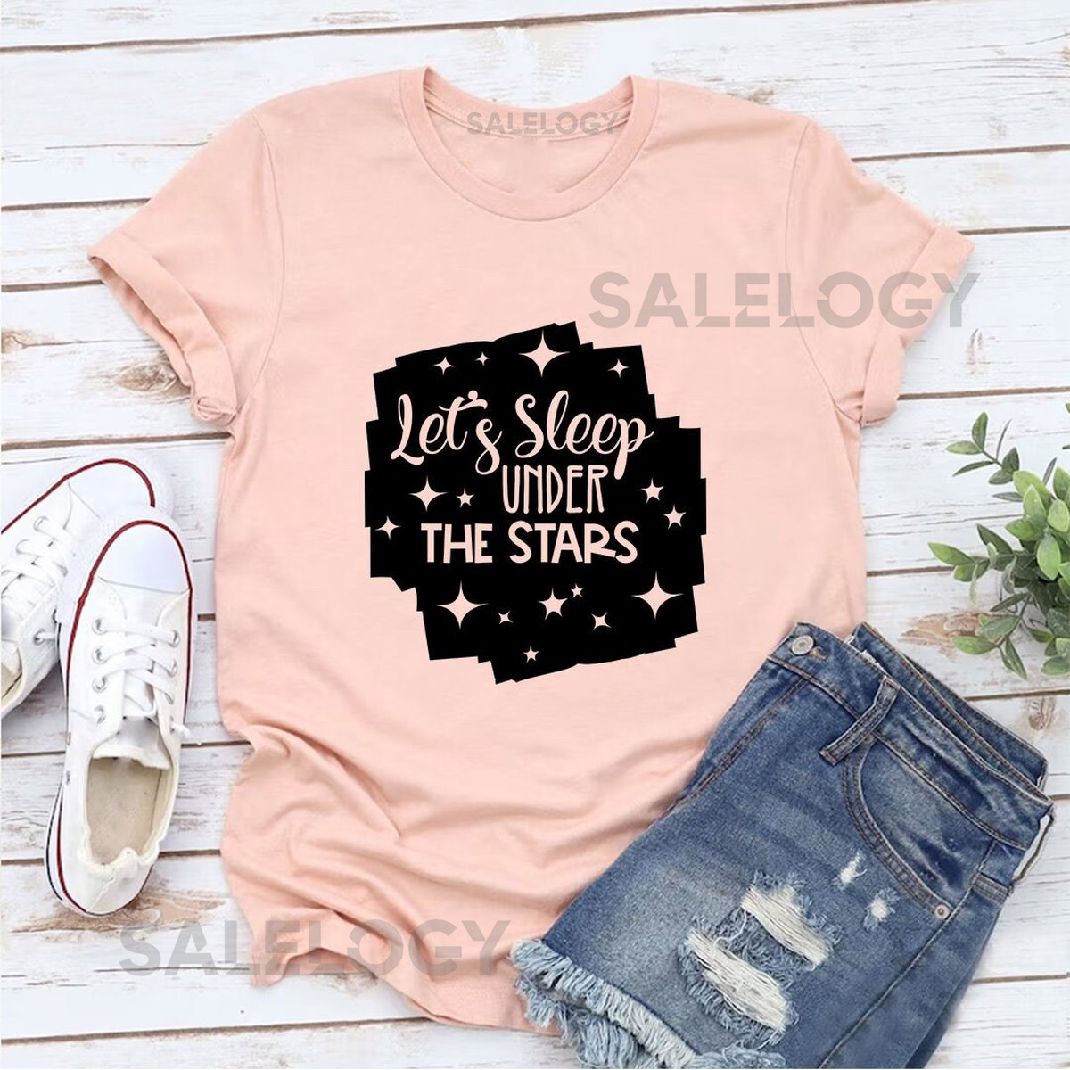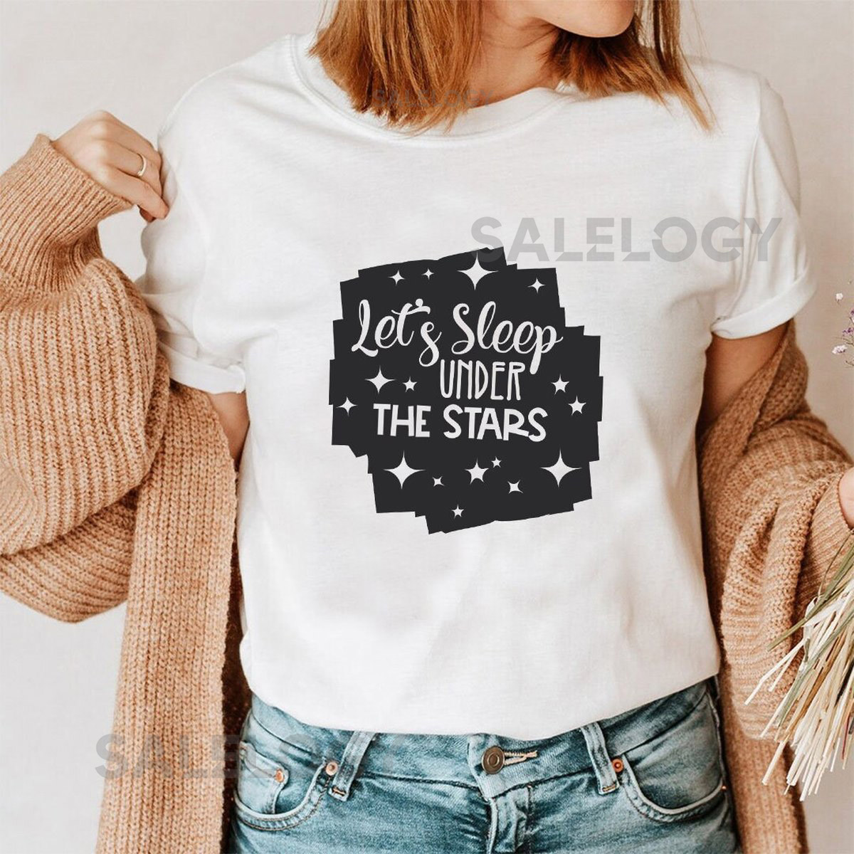 Let’s Sleep Under the Stars T-Shirt – Customized Graphic Unisex Tee- Dreamy Wardrobe -Camping is Everything -Stargazing Chic -Cosmic Comfort_635