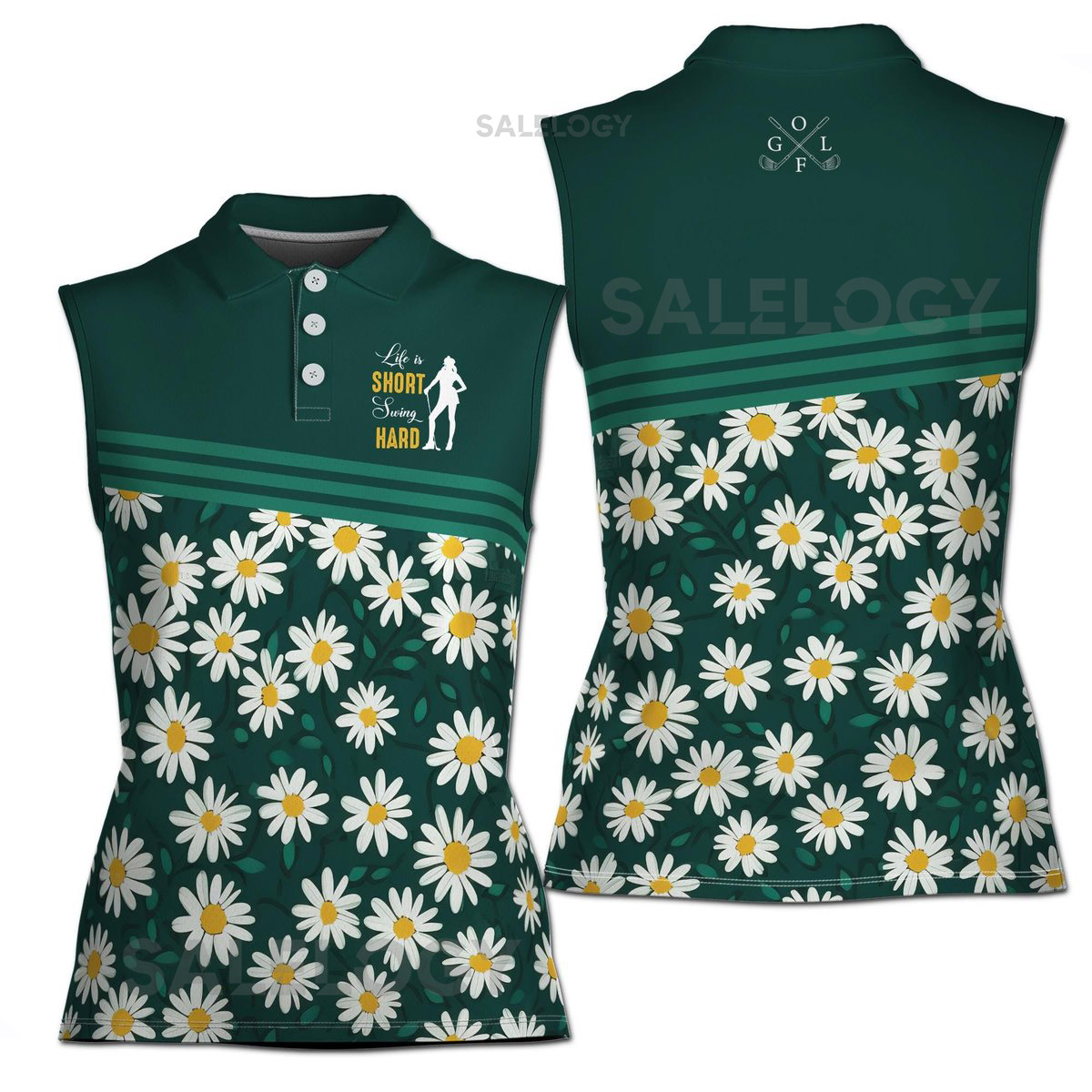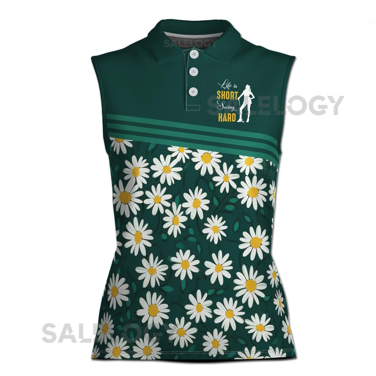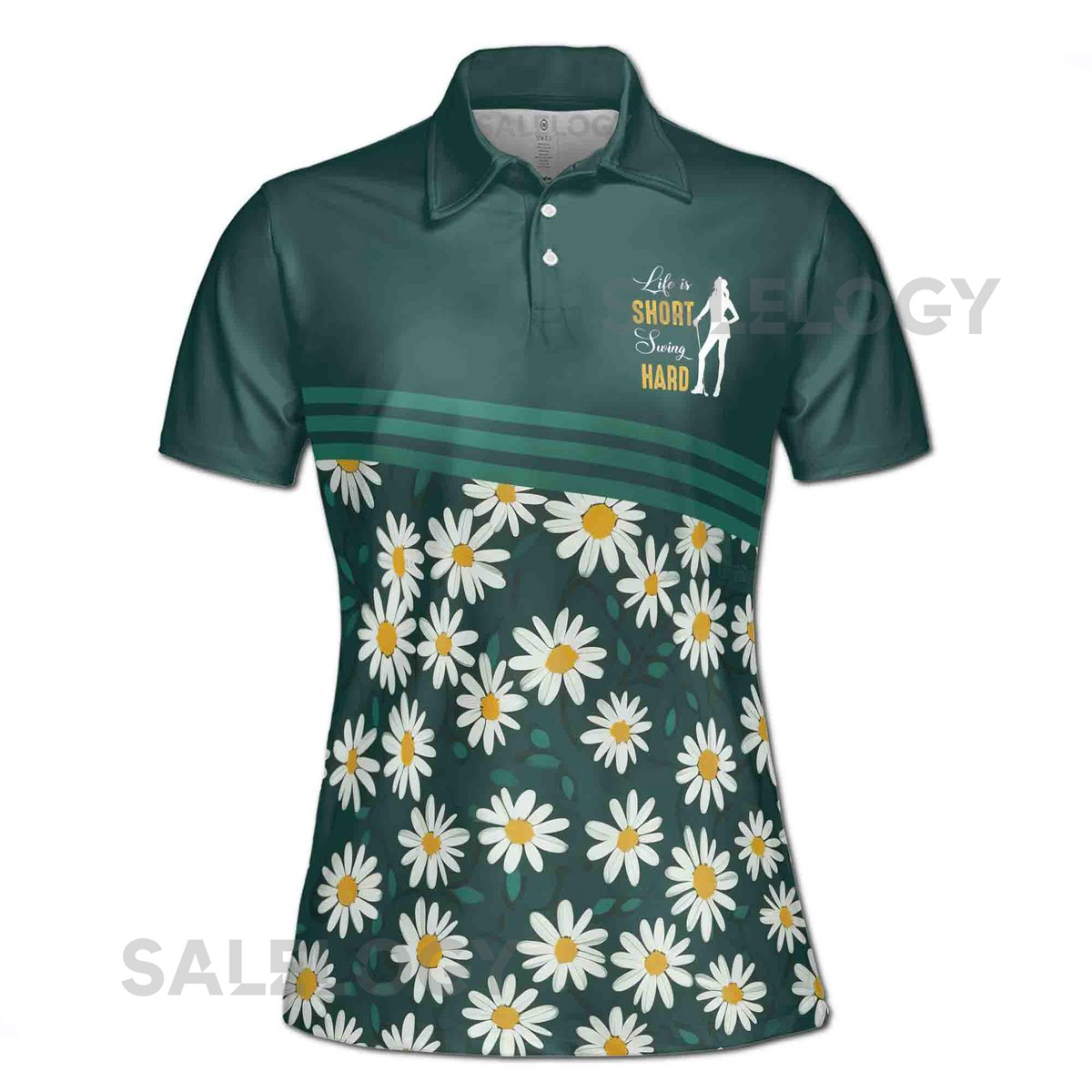 Life is Short Swing Hard Flower Daisy Golfer Women39s Polo Shirt S-5XL_515