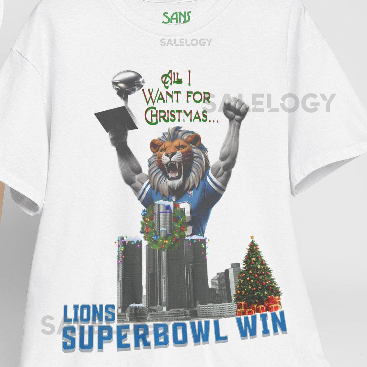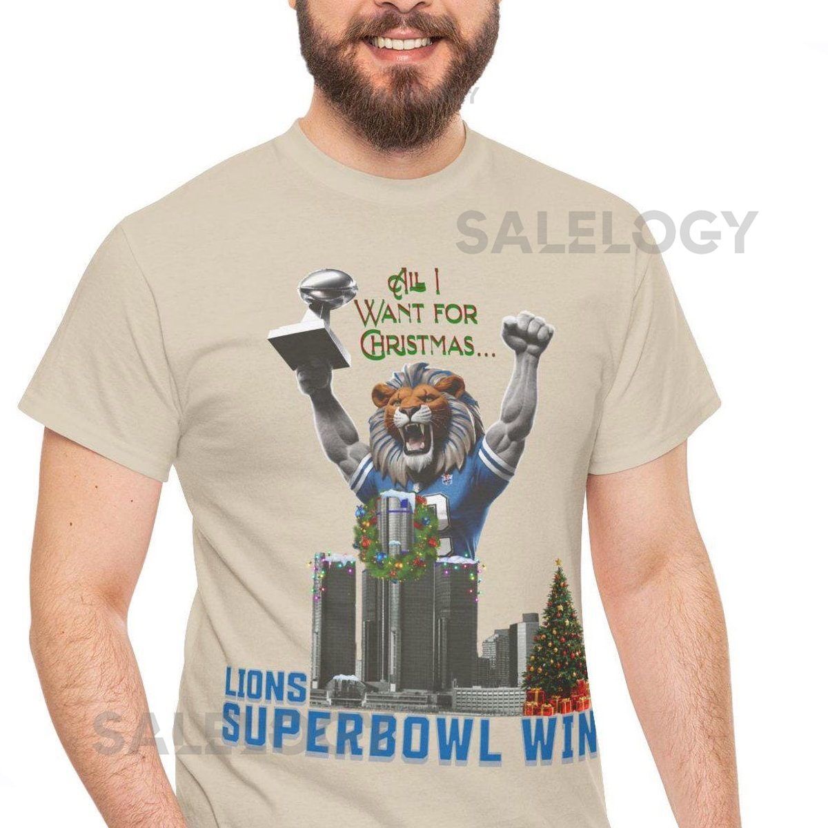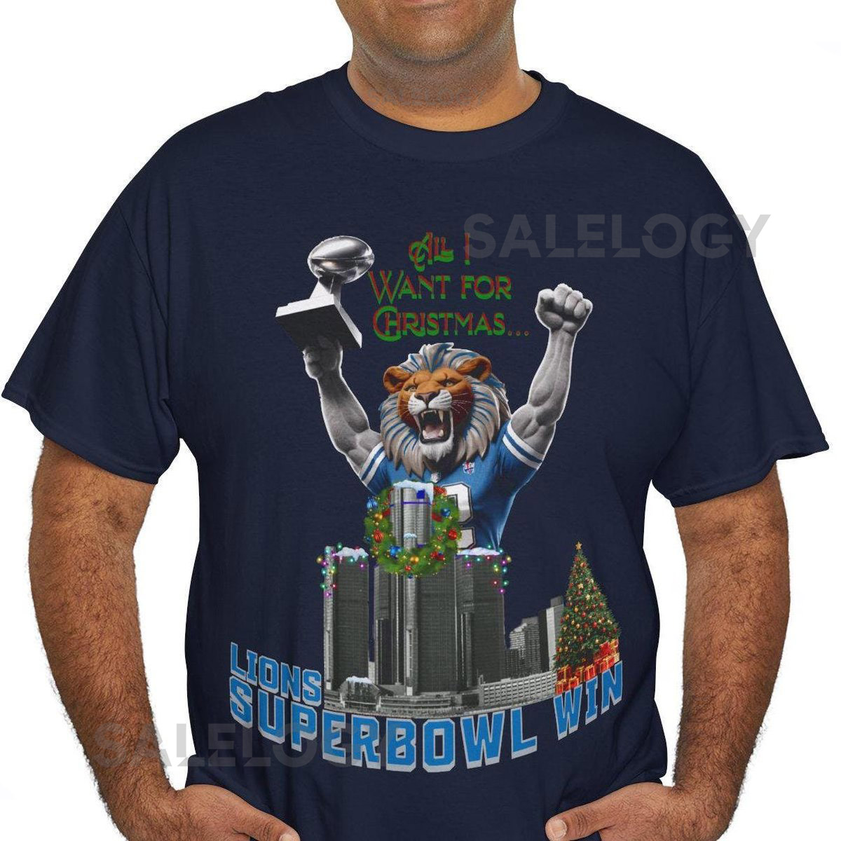 Lions Super Bowl Win – Christmas Shirt Unisex Heavy Cotton Tee Detroit Football Detroit Lions Tee Lions Fan Gift Football Christmas Wish_567
