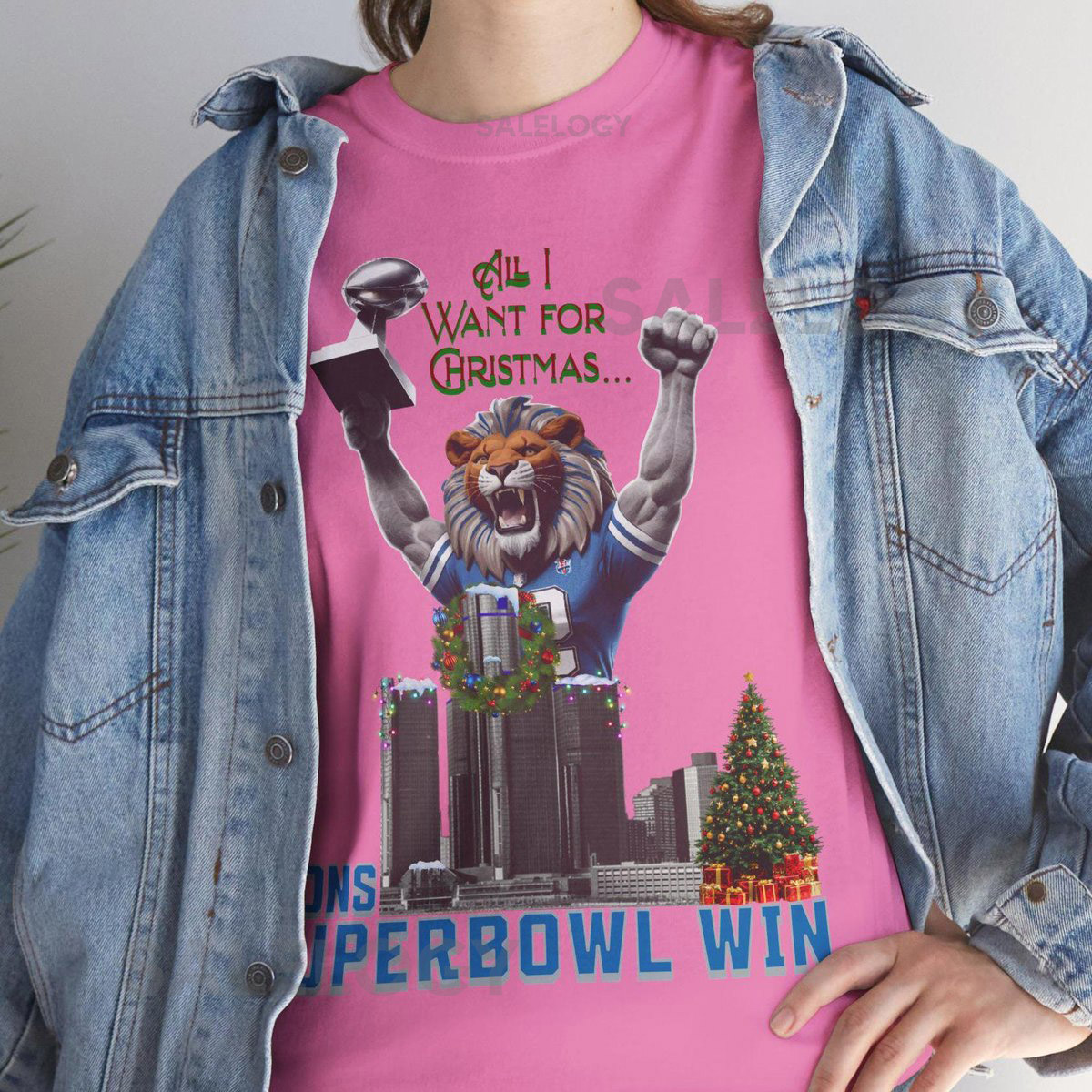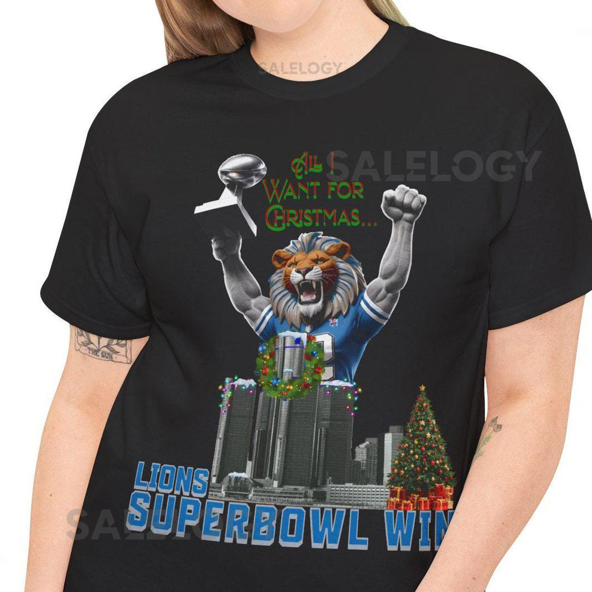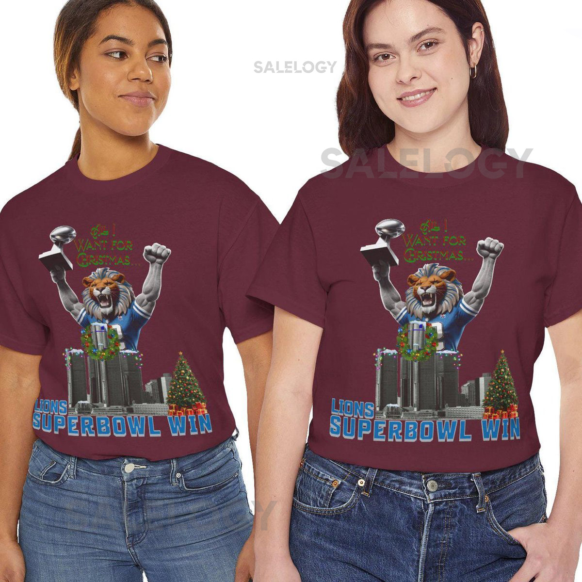 Lions Super Bowl Win – Christmas Shirt Unisex Heavy Cotton Tee Detroit Football Detroit Lions Tee Lions Fan Gift Football Christmas Wish_567