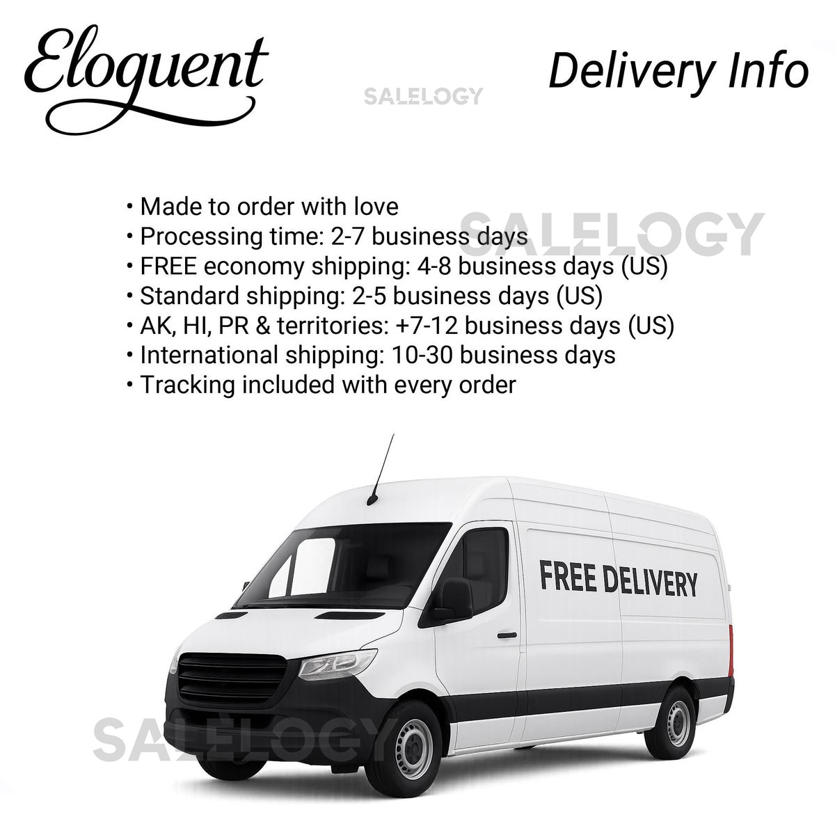- International Shipping*: $7.99 for the first item *Note: Special locations may have higher shipping costs.