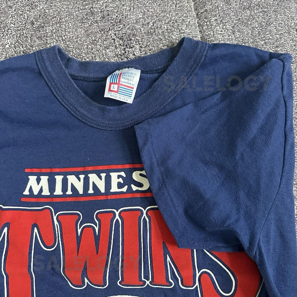 Men’s Vintage 80’s MLB Garan Minnesota Twins Baseball Navy Blue T Shirt Tee Sz L_560