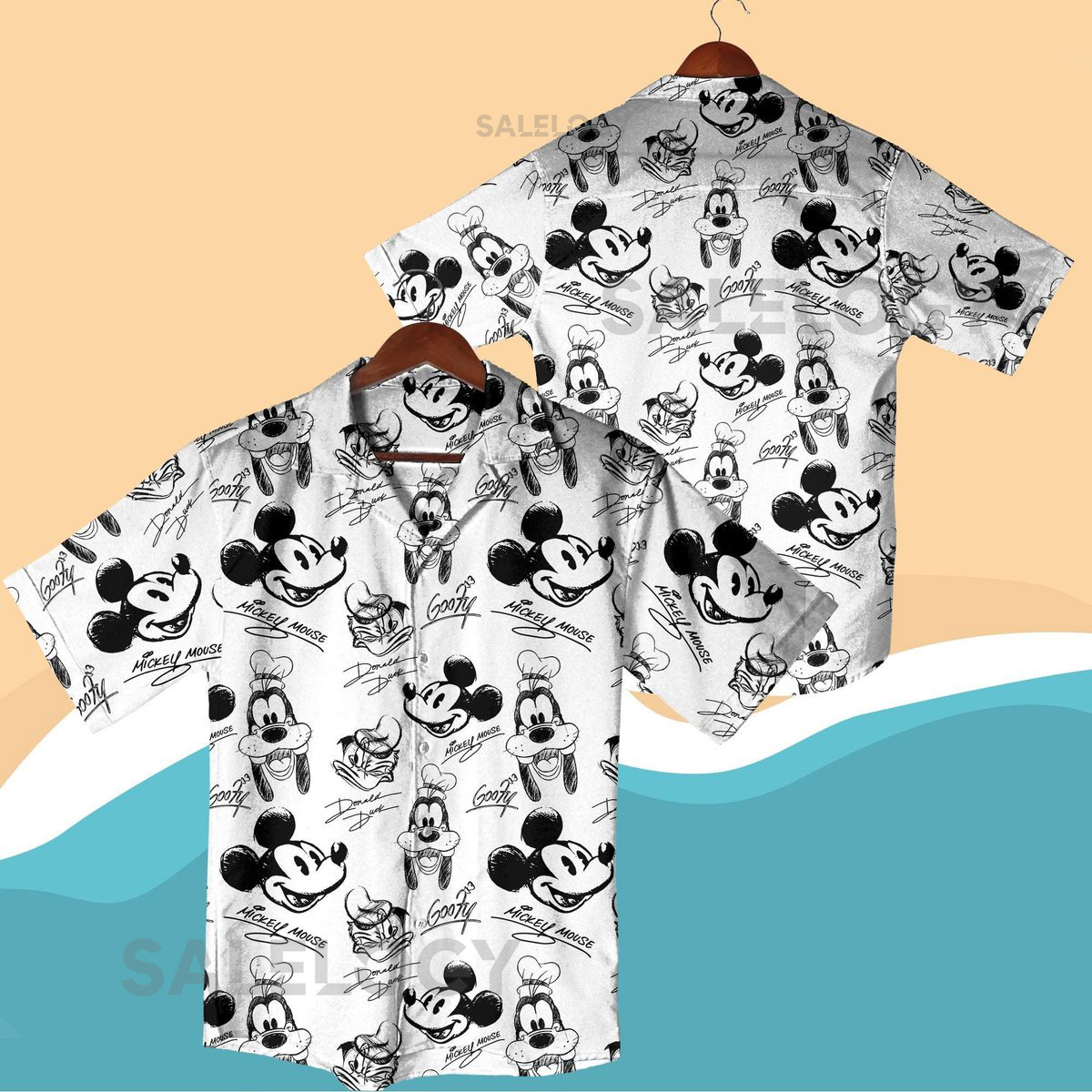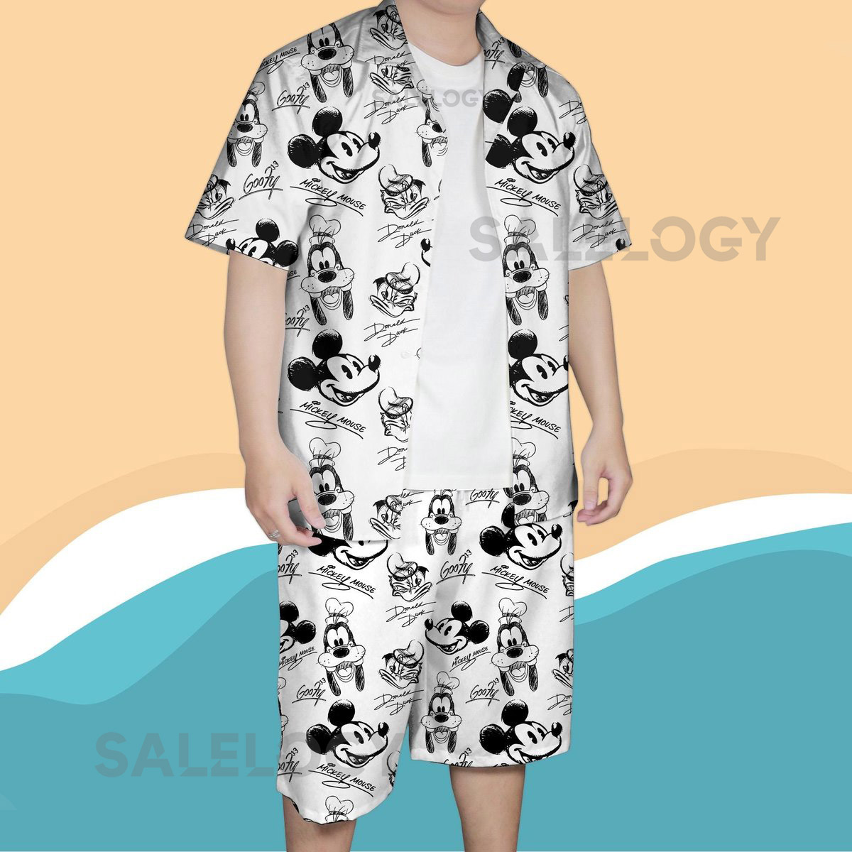 Mickey And Friends Sketch Art Hawaiian Shirt Mickey Mouse Donald Duck Goofy Hawaiian Shirts Summer Trip Hawaii Set_136