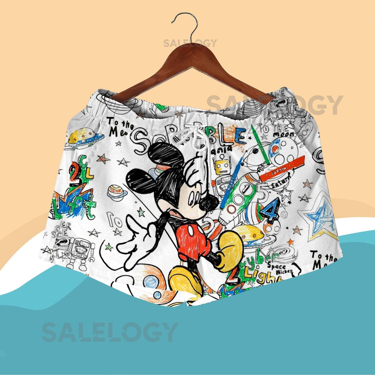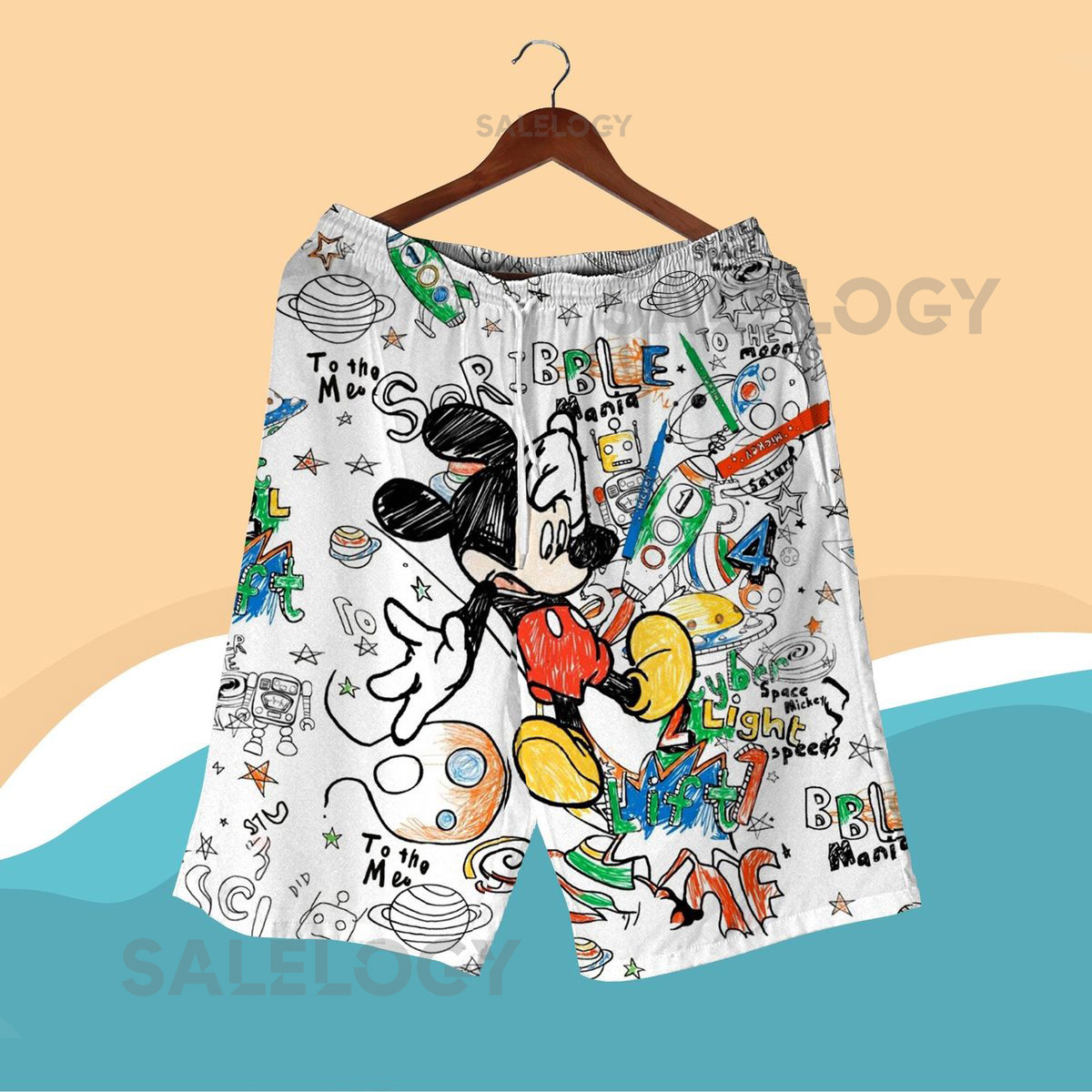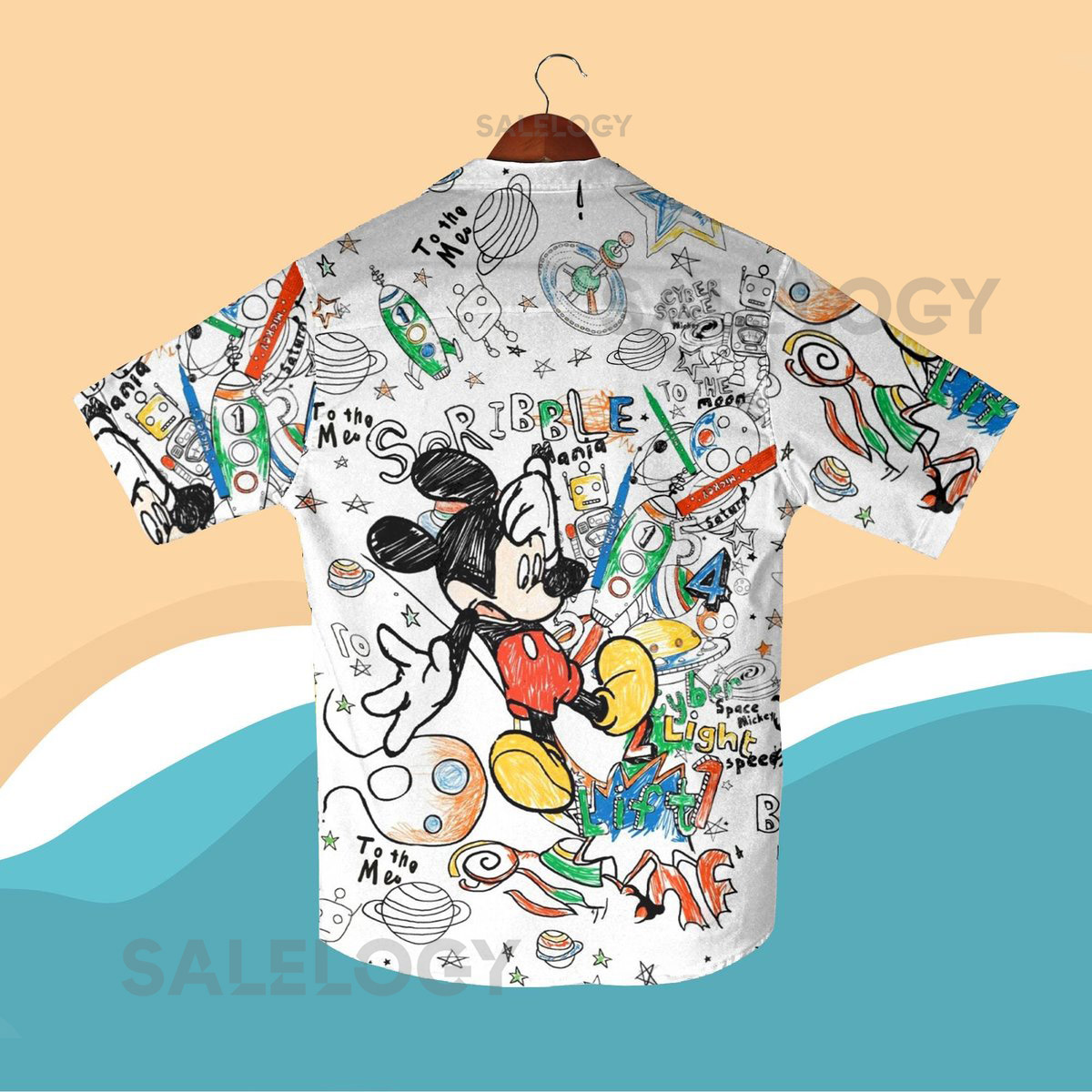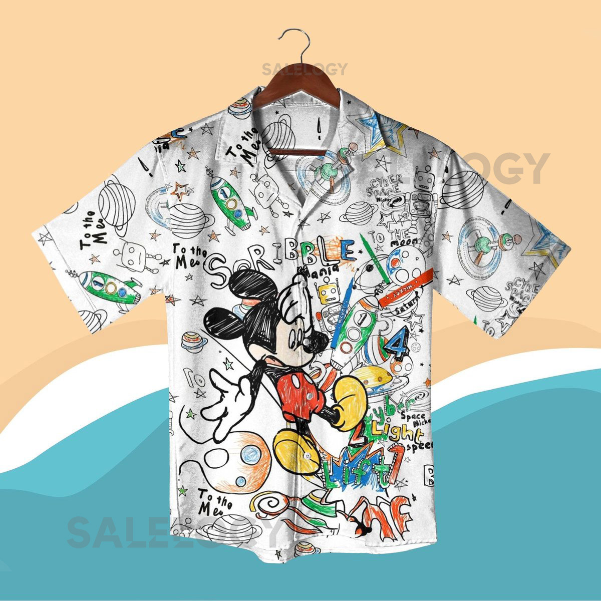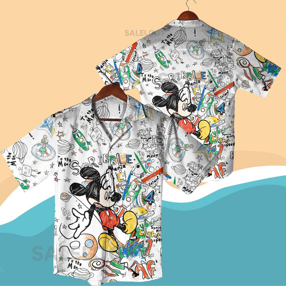 Mickey Mouse Sketch Hawaiian Shirt Shorts Set Cartoon Doodle Summer Outfit Space Theme Matching Set Mickey Shirt Beach Shirt_189