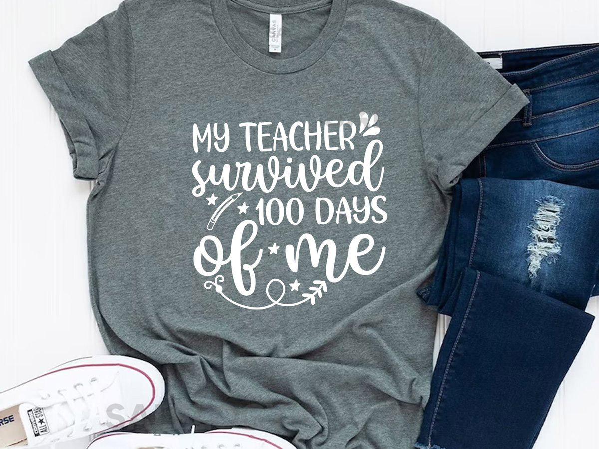 My Teacher Survived 100 Days of Me T-Shirt – Customized Graphic Unisex Tee – Gift For Teacher’s Day – Teacher Appreciation Tee_749