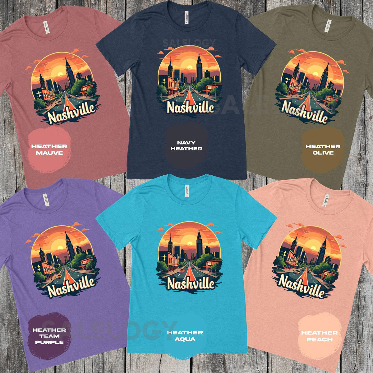 Nashville City Sunset TShirt Retro Nashville Skyline Tee Nashville Tennessee Souvenir Shirt Vibrant Sunset Graphic Tee_317