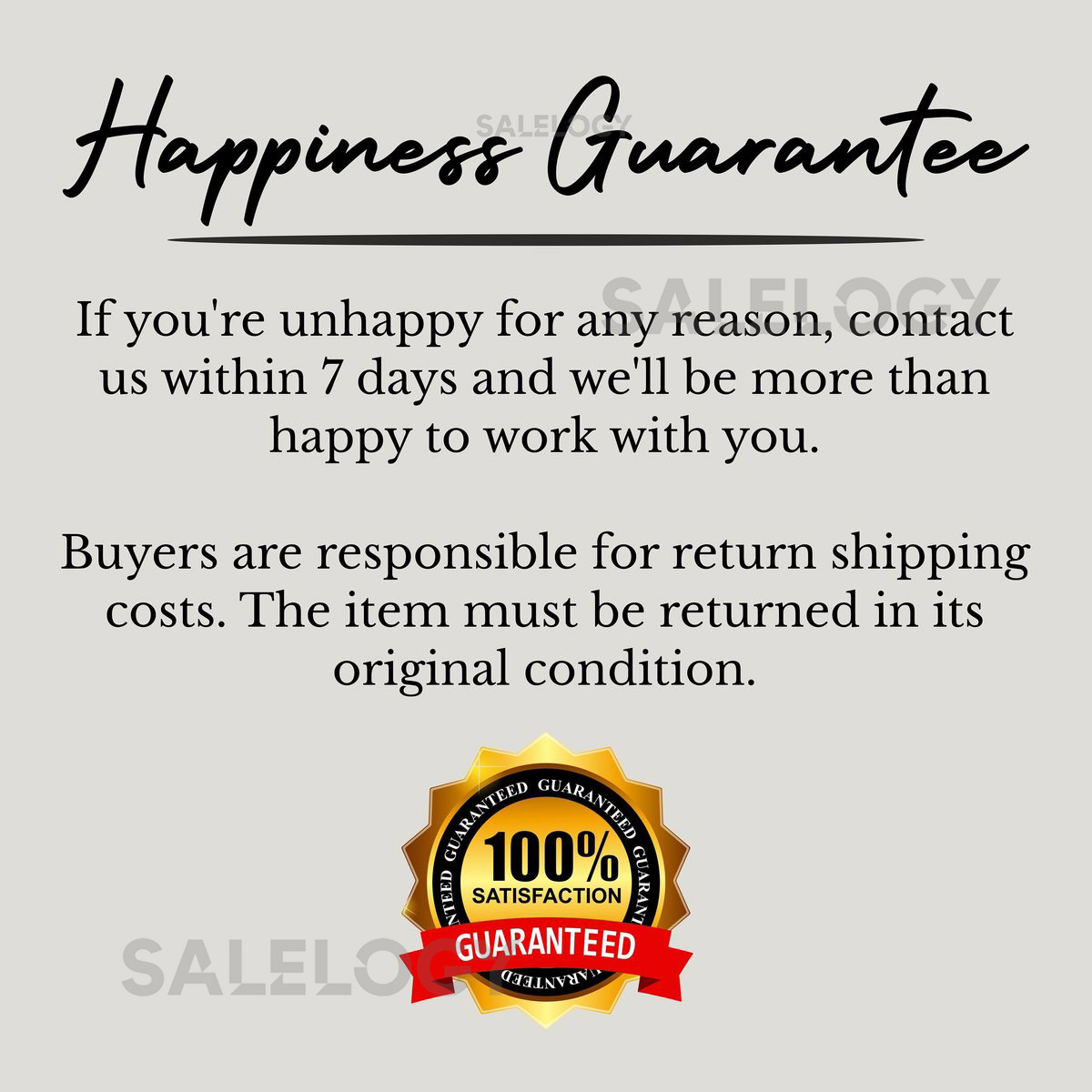 After receiving your order, you have 30 days to get in touch with us if there are any problems. Returns are only accepted if: