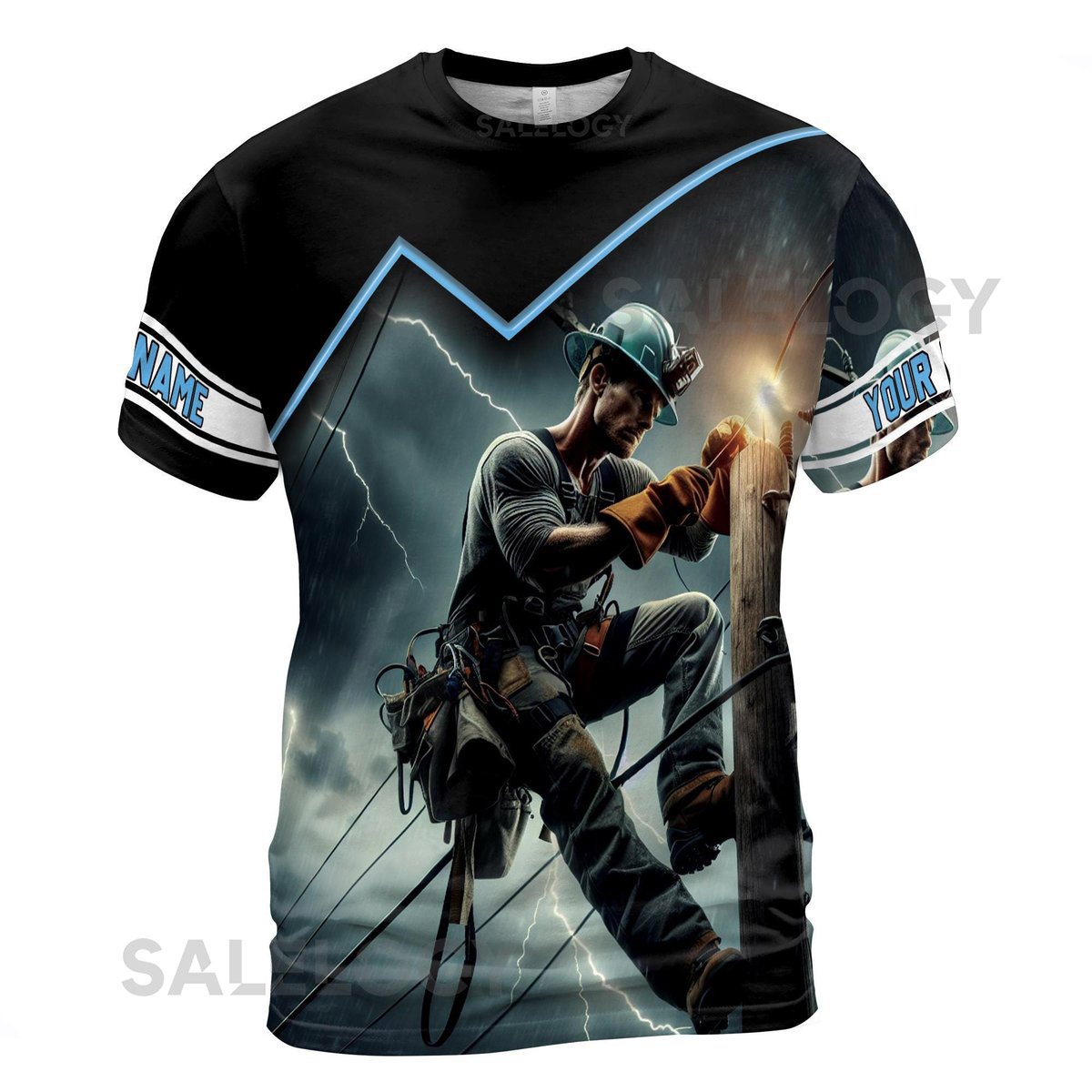 Personalized Electrician T-Shirt Sky Thunder Lightning Design_234