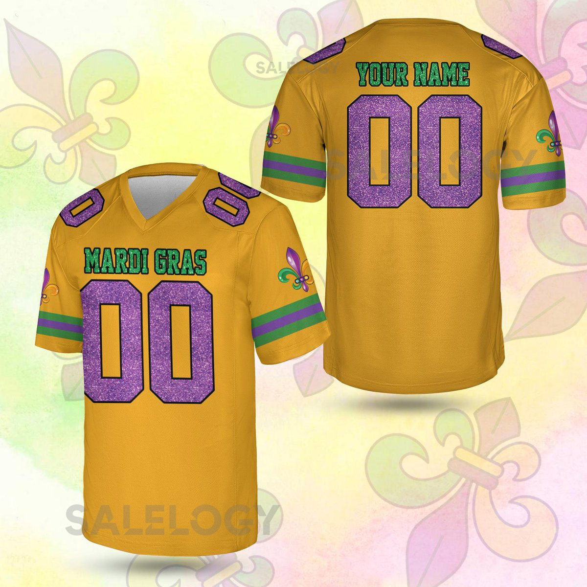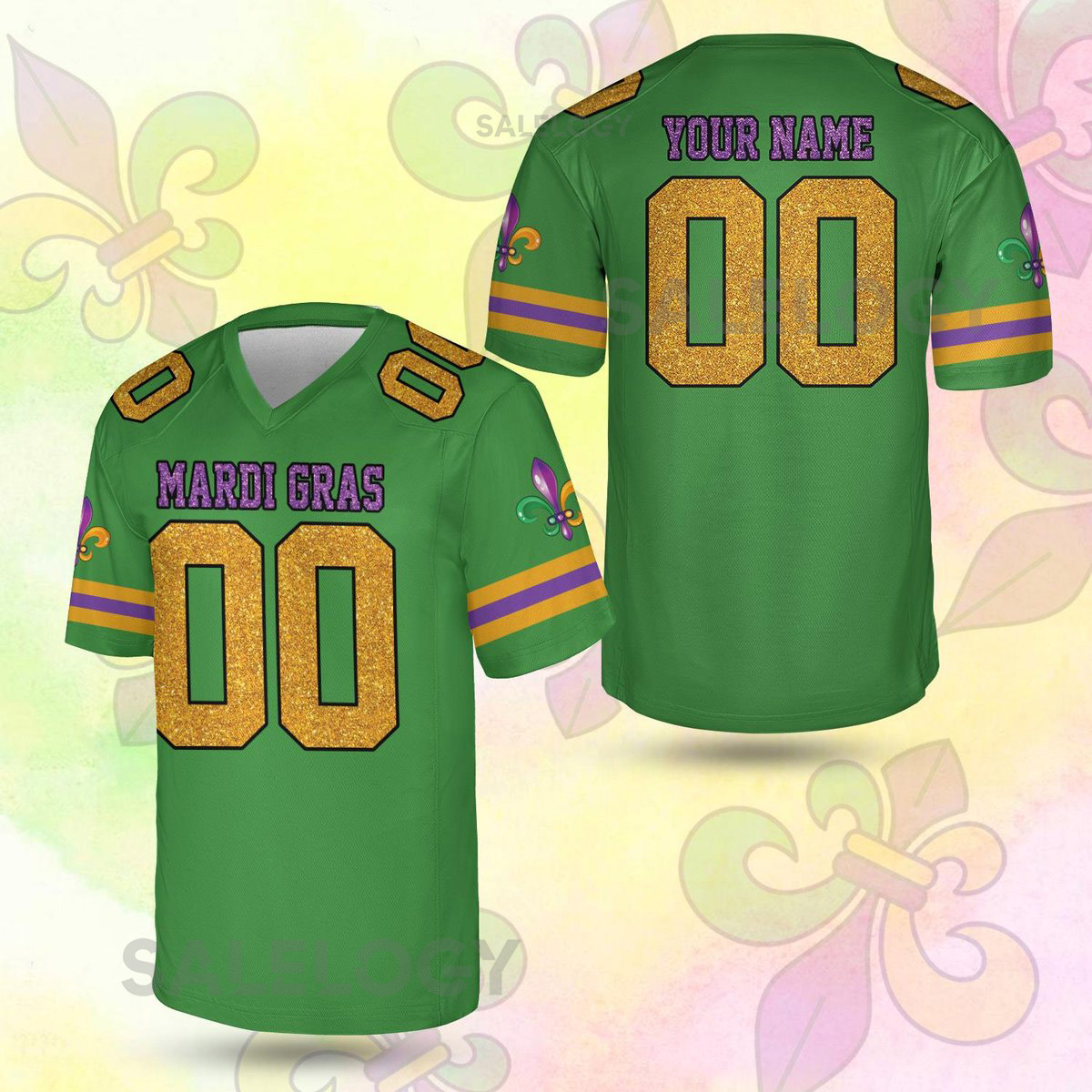 Personalized Glitter Mardi Gras Football Jersey Custom Name And Number Short Sleeve Jersey Mardi Gras Carnival Jersey Printed Glitter_8