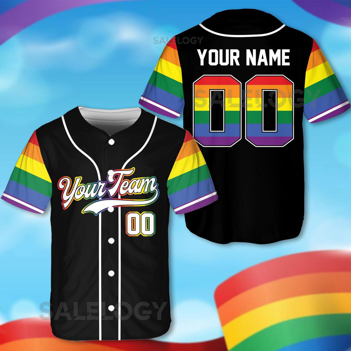Personalized LGBTQ Team Name And Number Baseball Jersey Custom LGBT Pride Month Baseball Jersey Shirt Rainbow Baseball Jersey_189