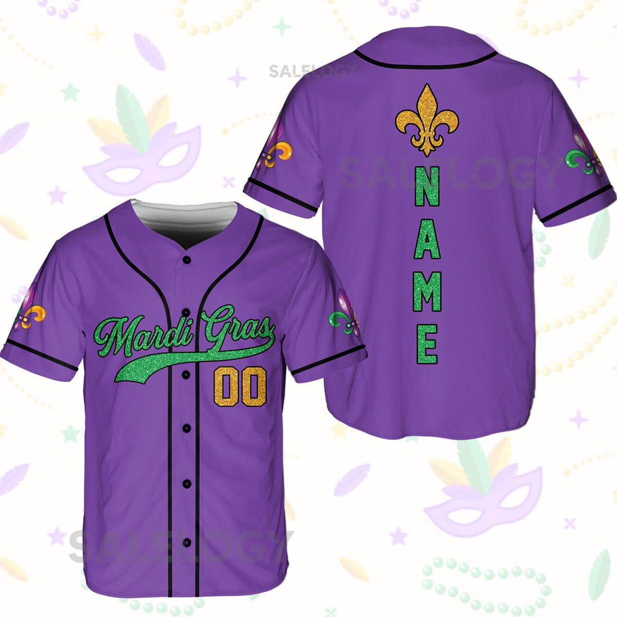 Personalized Mardi Gras Baseball Jersey Custom Name And Number Baseball Jersey Mardi Gras Carnival Jersey Gift For Family Matching_215