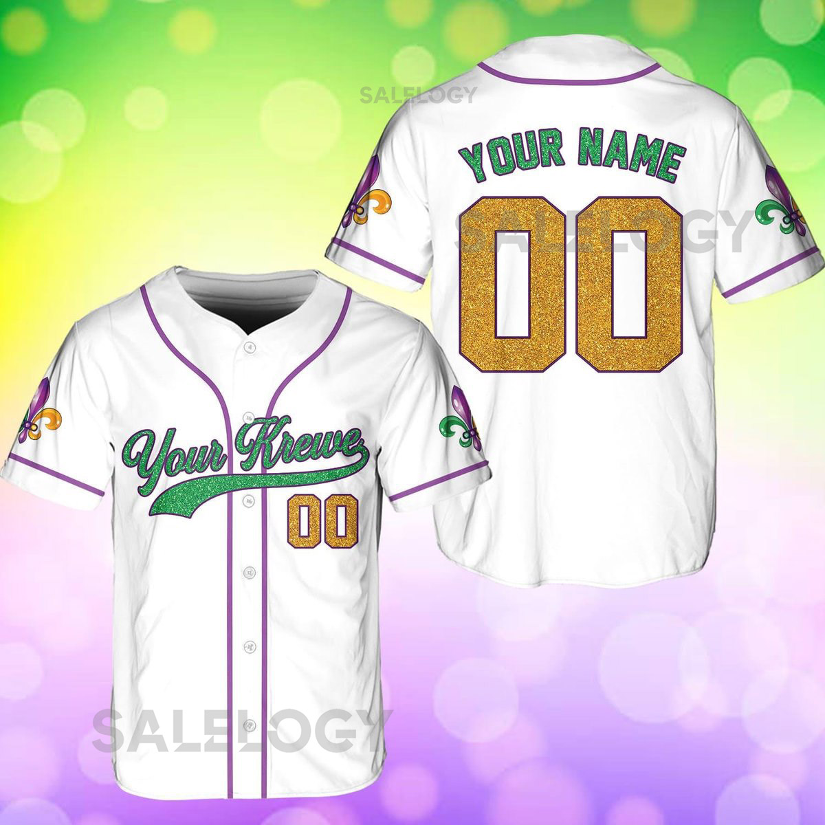 Personalized Mardi Gras Baseball Jersey Custom Your Krewe Name Number Mardi Gras Baseball Jersey Mardi Gras Team Jersey Family Matching_240
