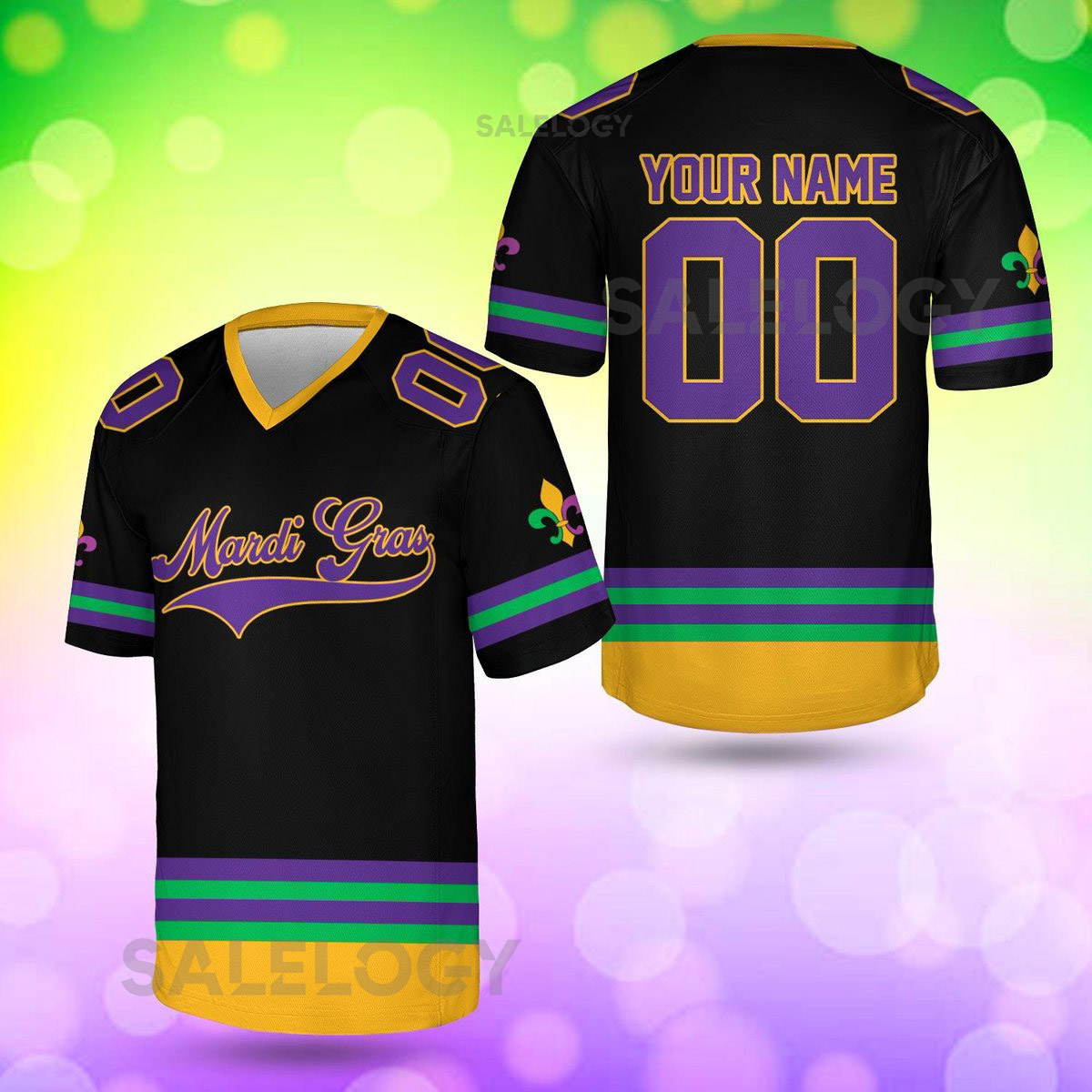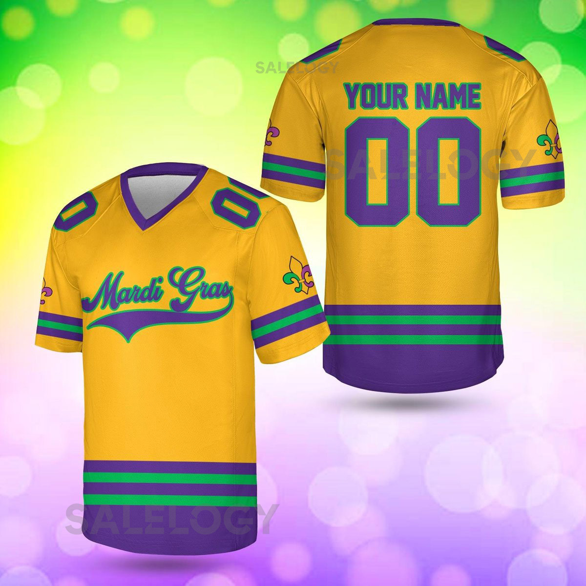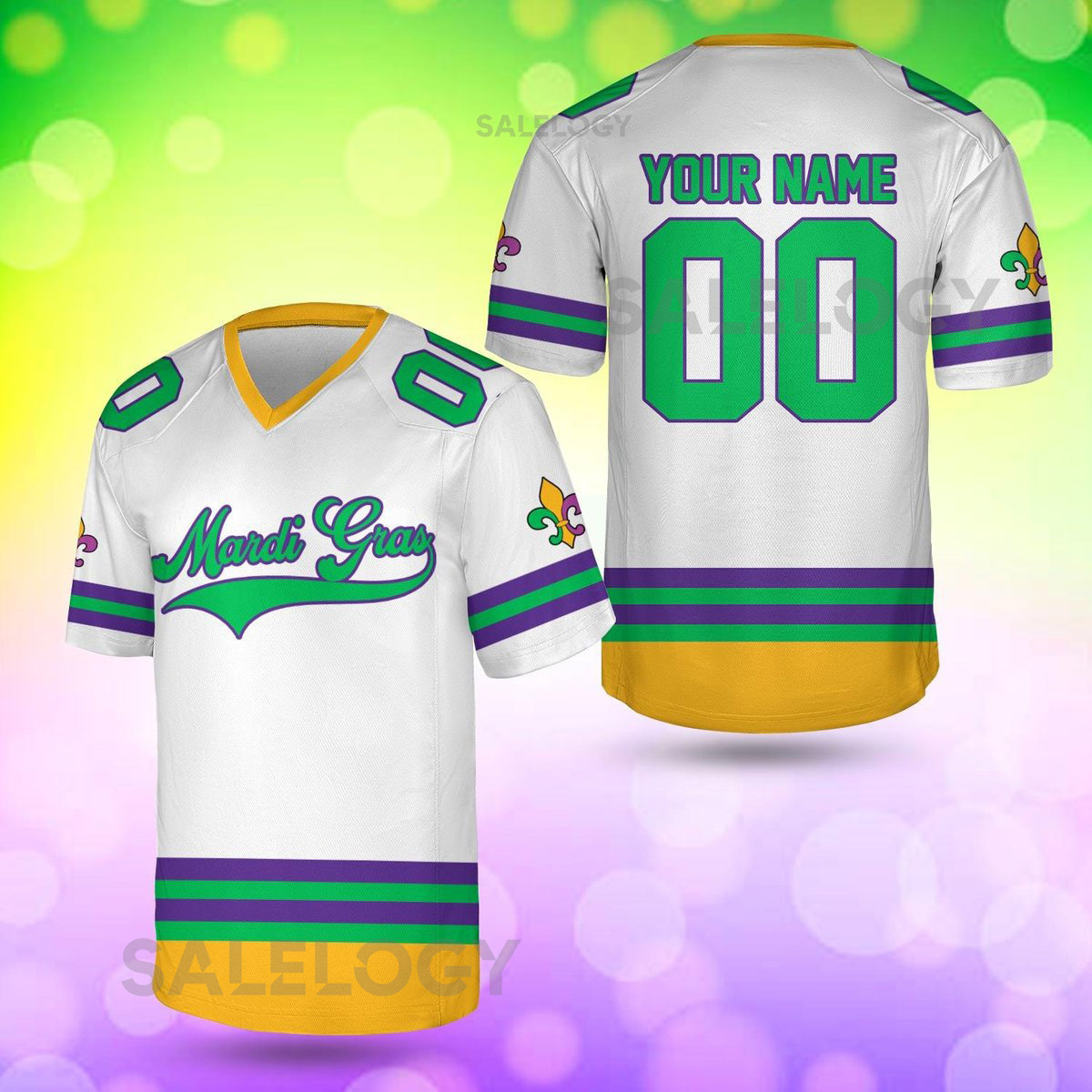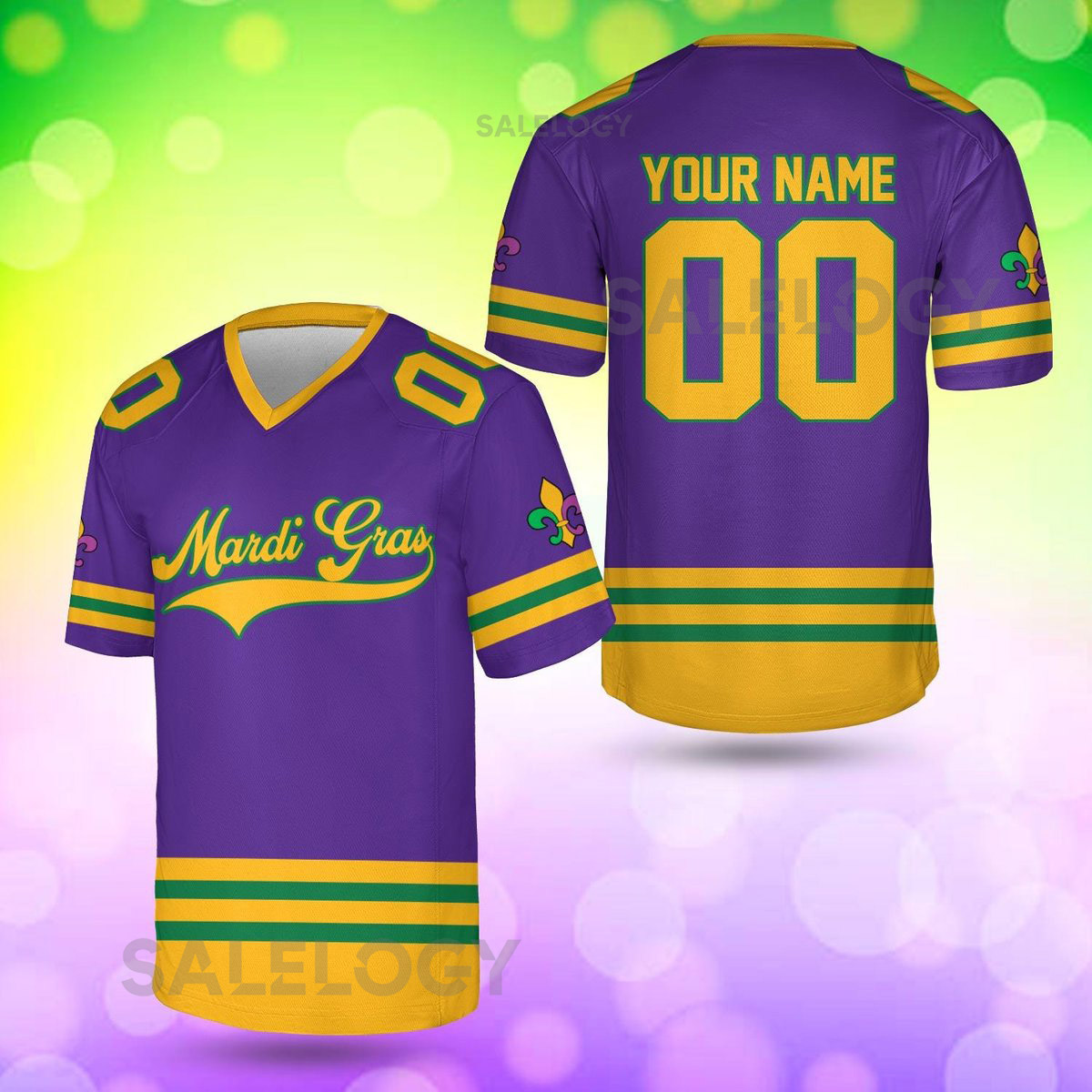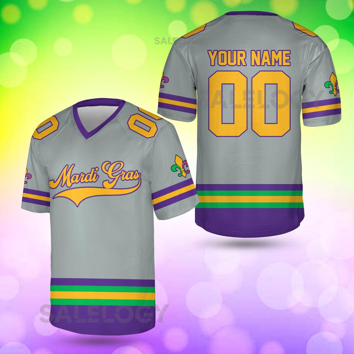 Personalized Mardi Gras Football Jersey Custom Your Name And Number V-neck Short Sleeve Jersey Mardi Gras Jersey Family Matching_18