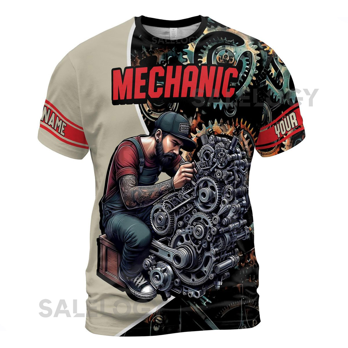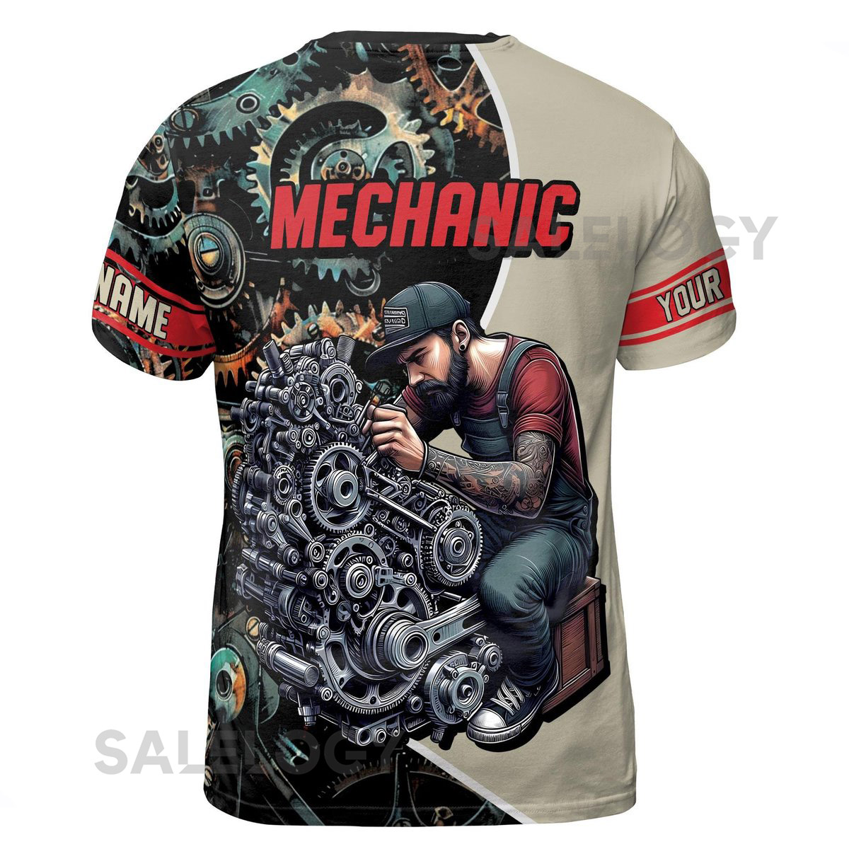 Personalized Mechanic T-Shirt Wrench Gears 3D Design_243