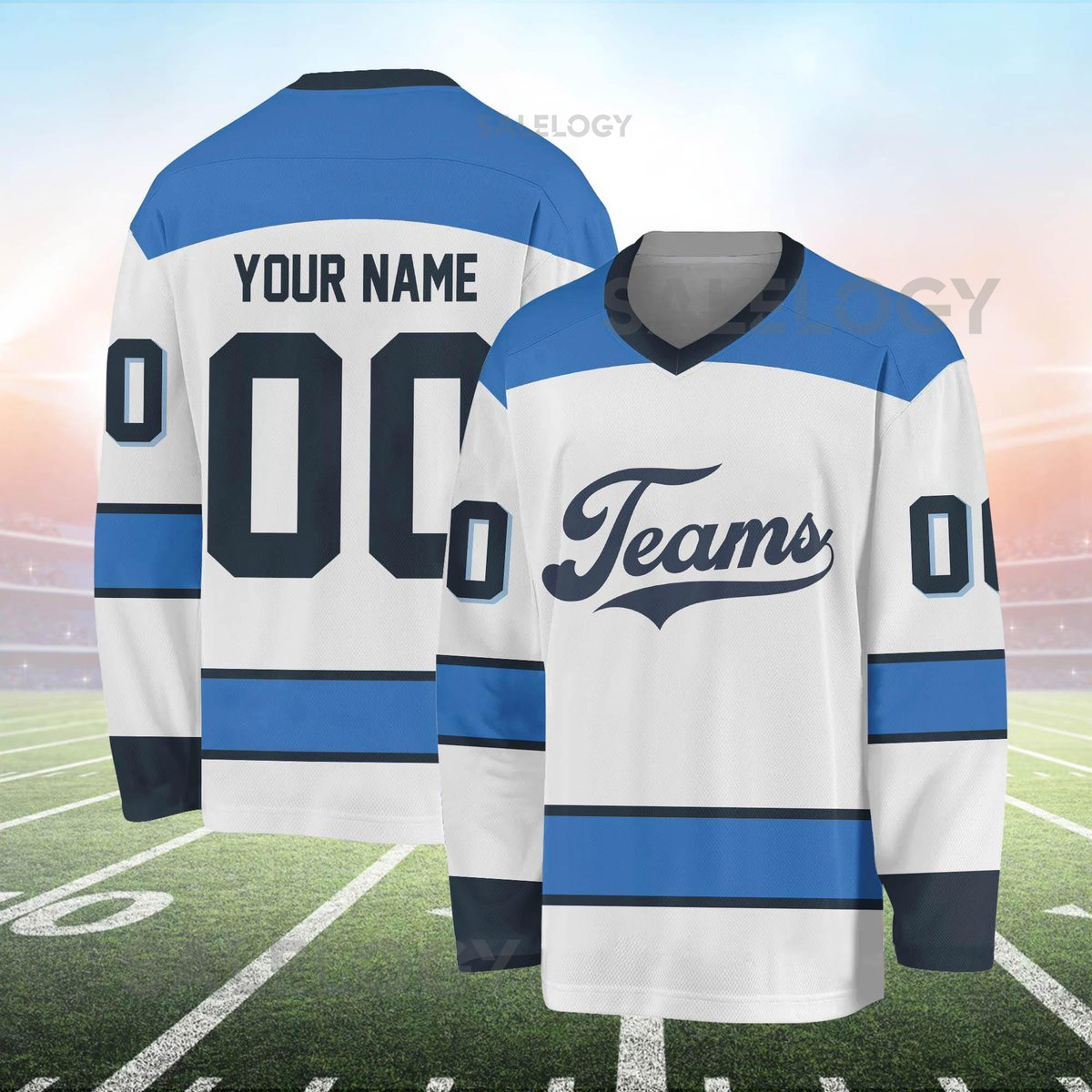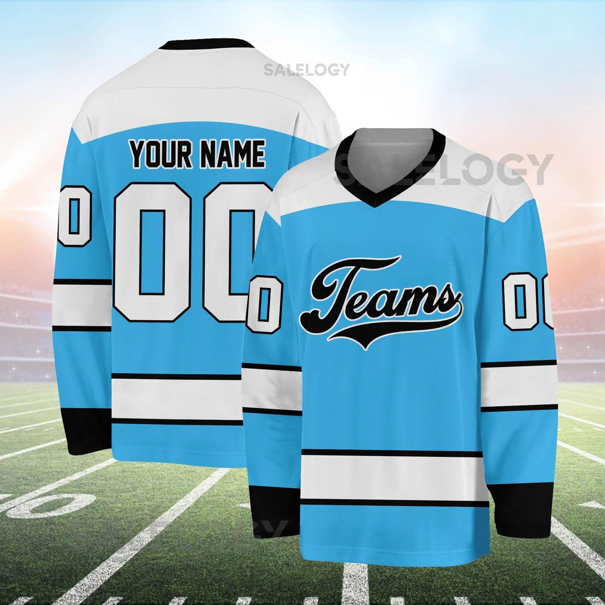 Receive your uniquely designed hockey jersey made just for you.