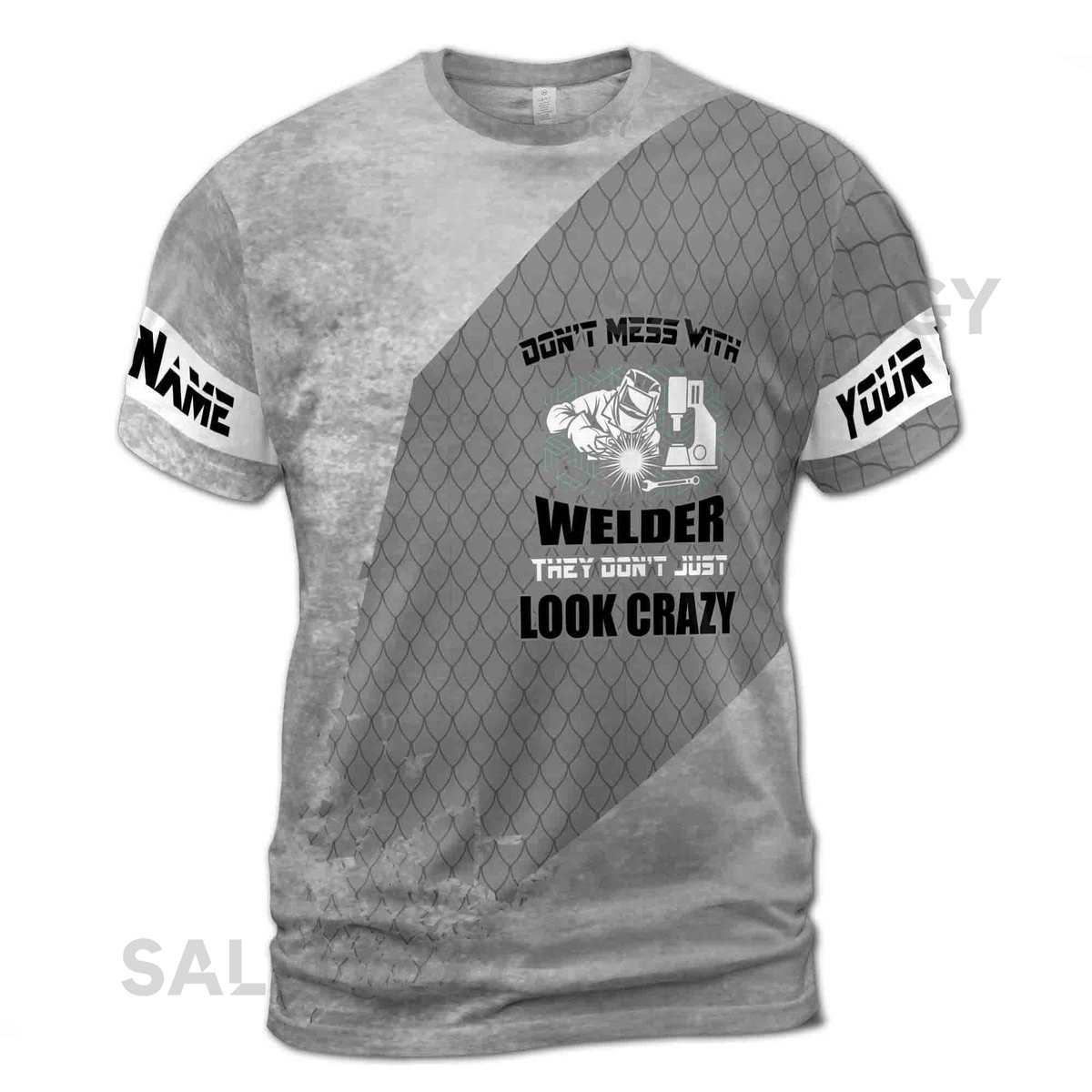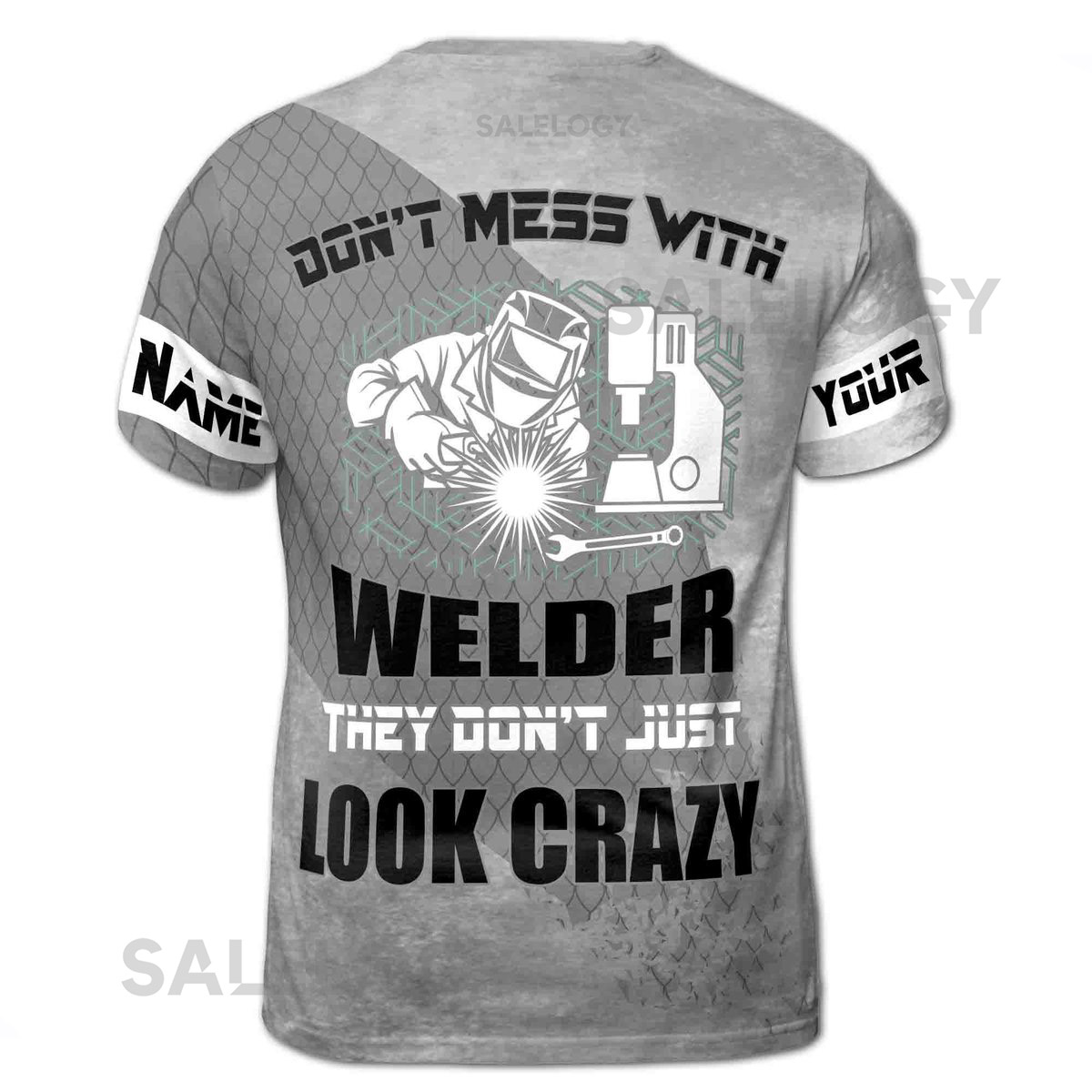 Personalized Welder T-Shirt Metalworking Quote Gray Net Pattern_259