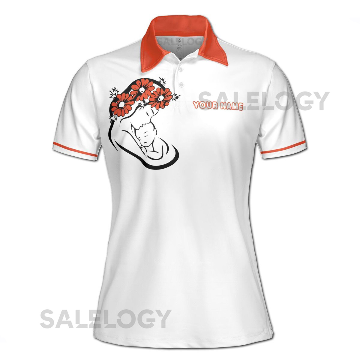 Personalized Women39s Polo Shirt Floral Mom Baby Design_601
