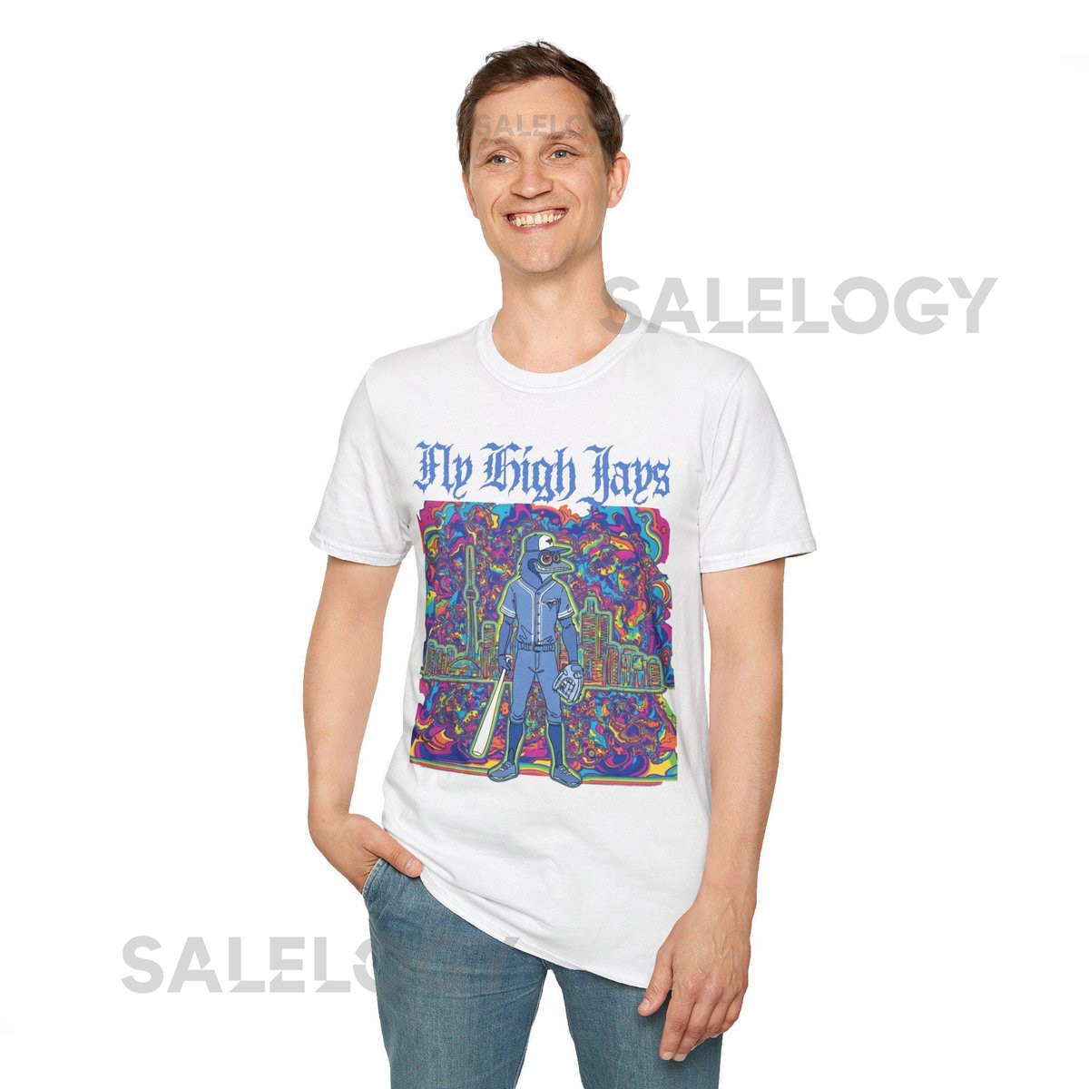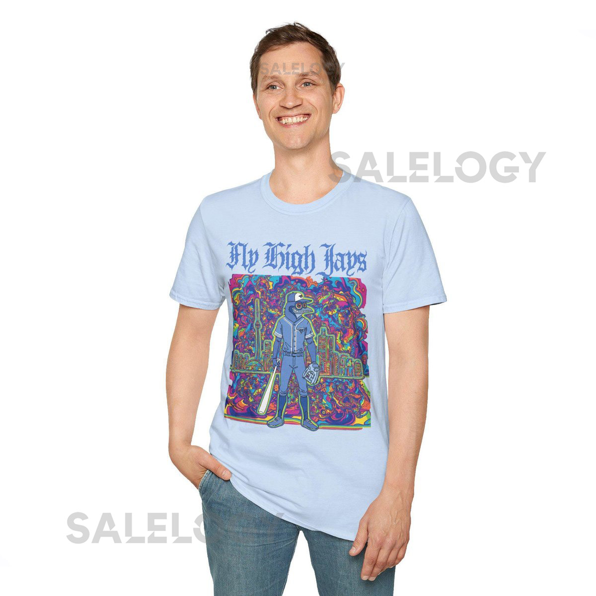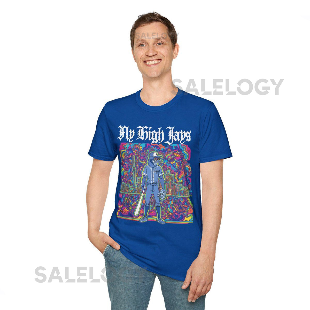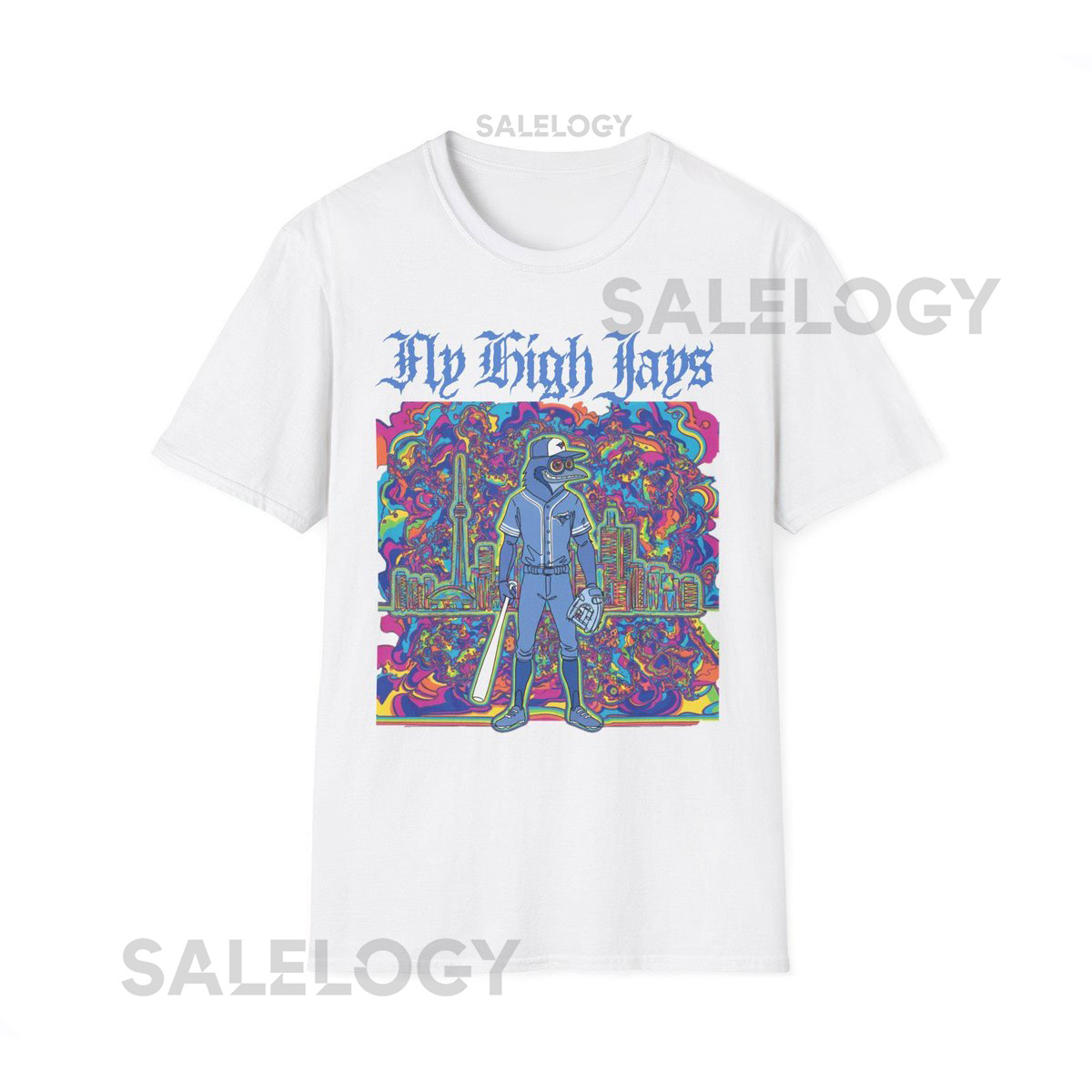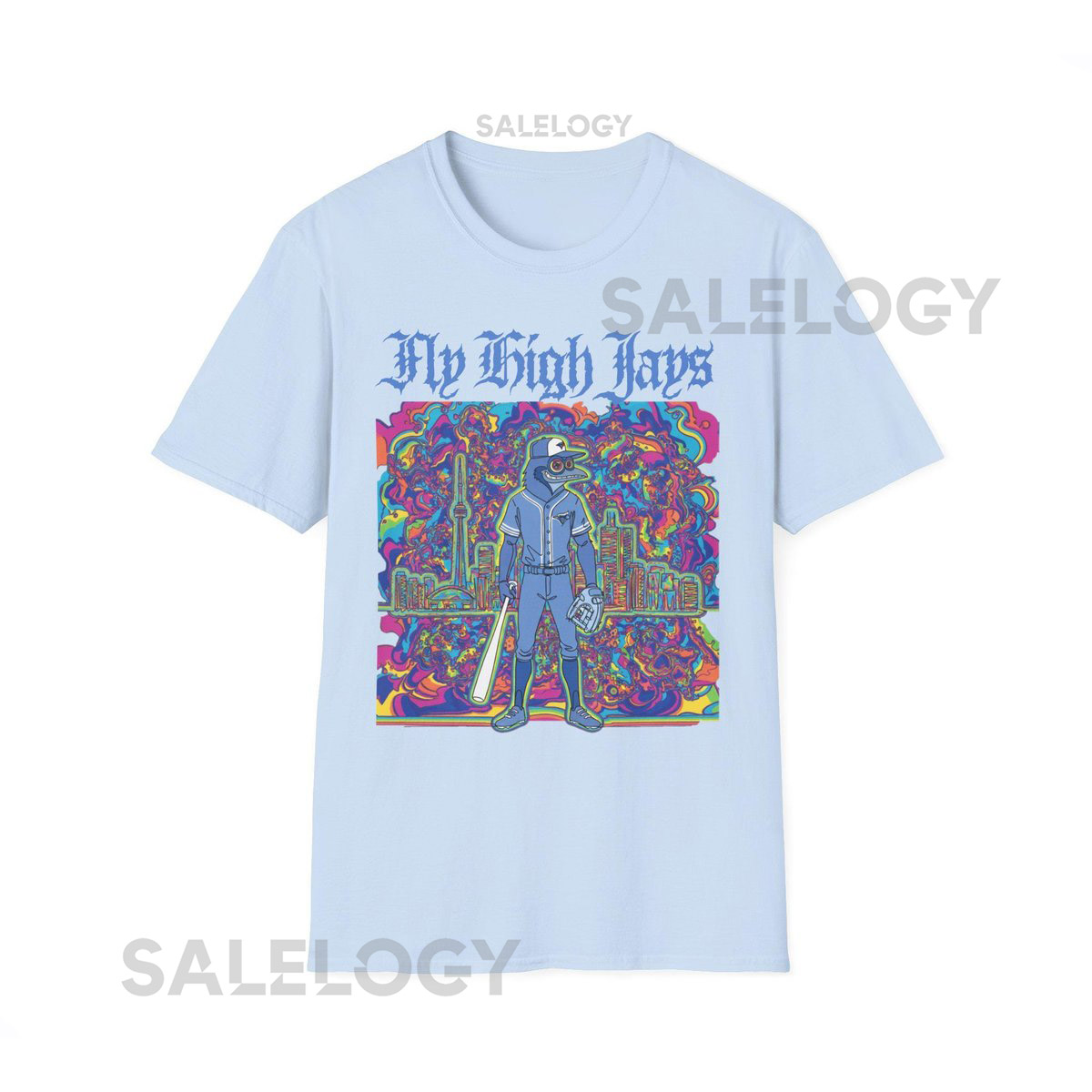 Psychedelic Blue Jays Unisex Softstyle T-Shirt Fly High Toronto Baseball_79