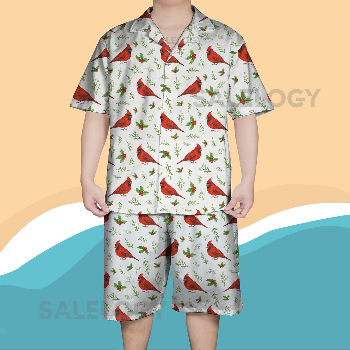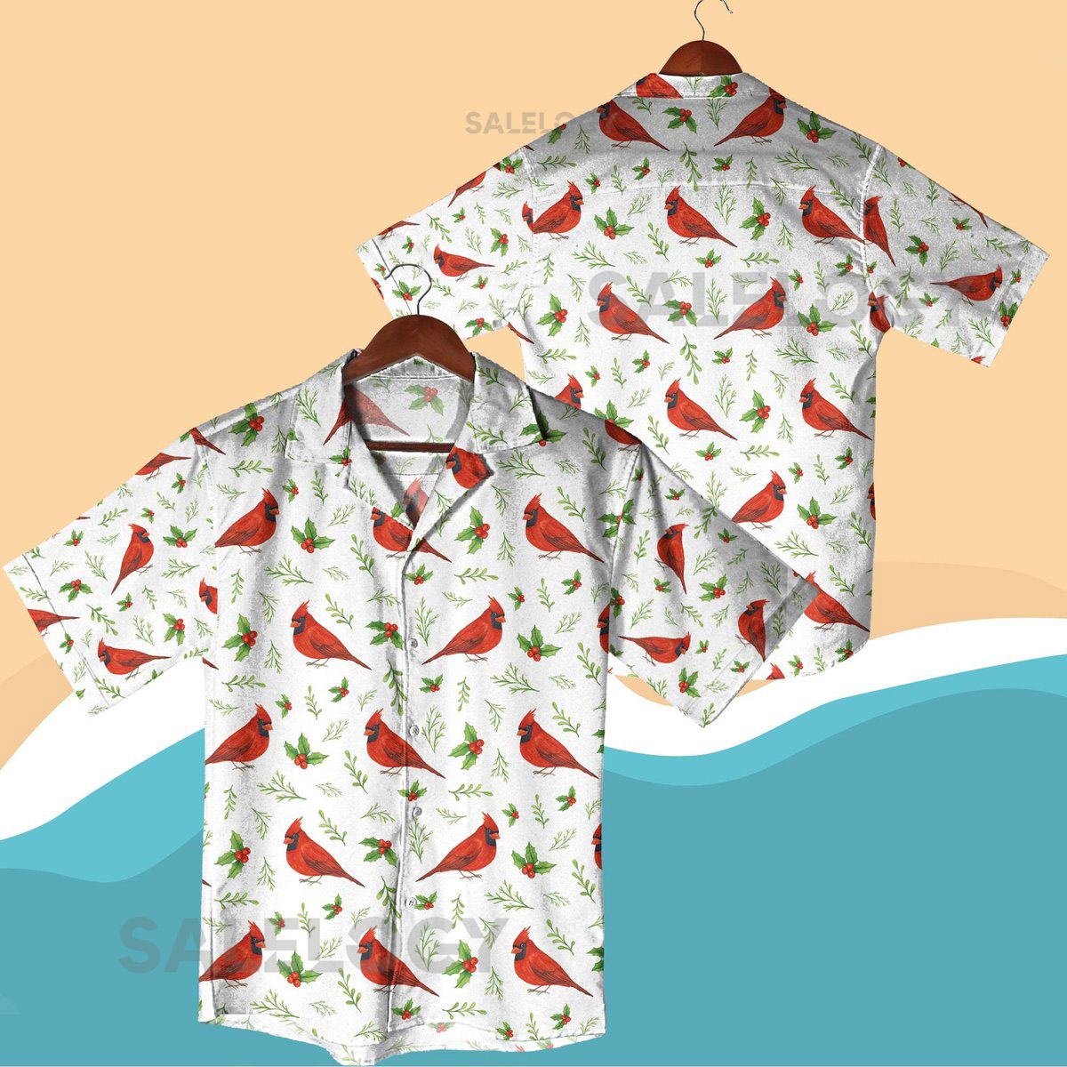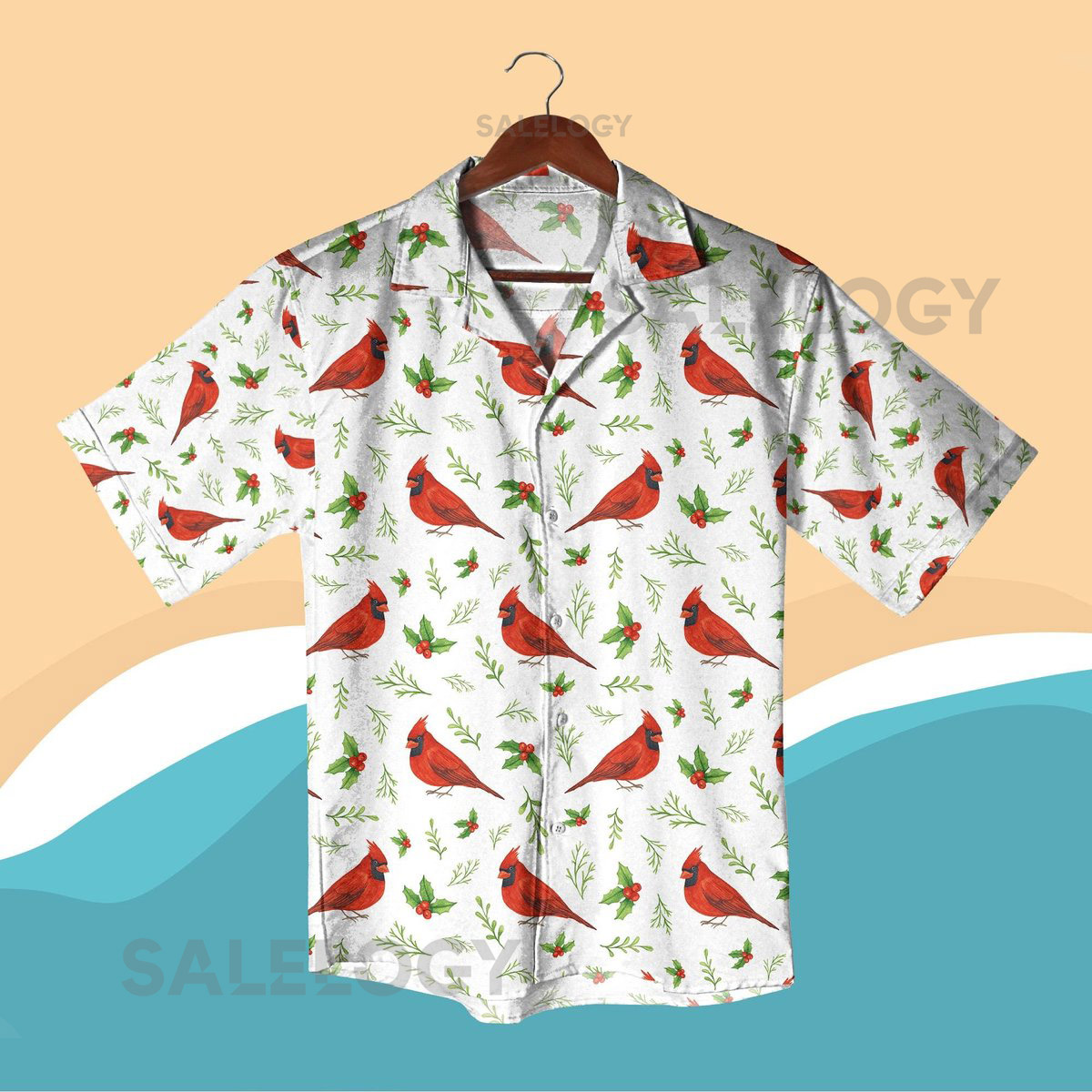 Red Cardinal Hawaiian Shirt Christmas Bird Print Vacation Outfit Tropical Holiday Shirt Summer Beachwear for Men Women Bird Lover Gift_216