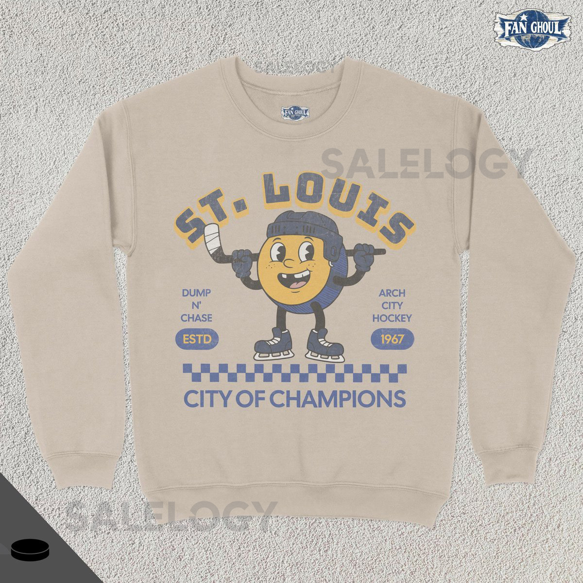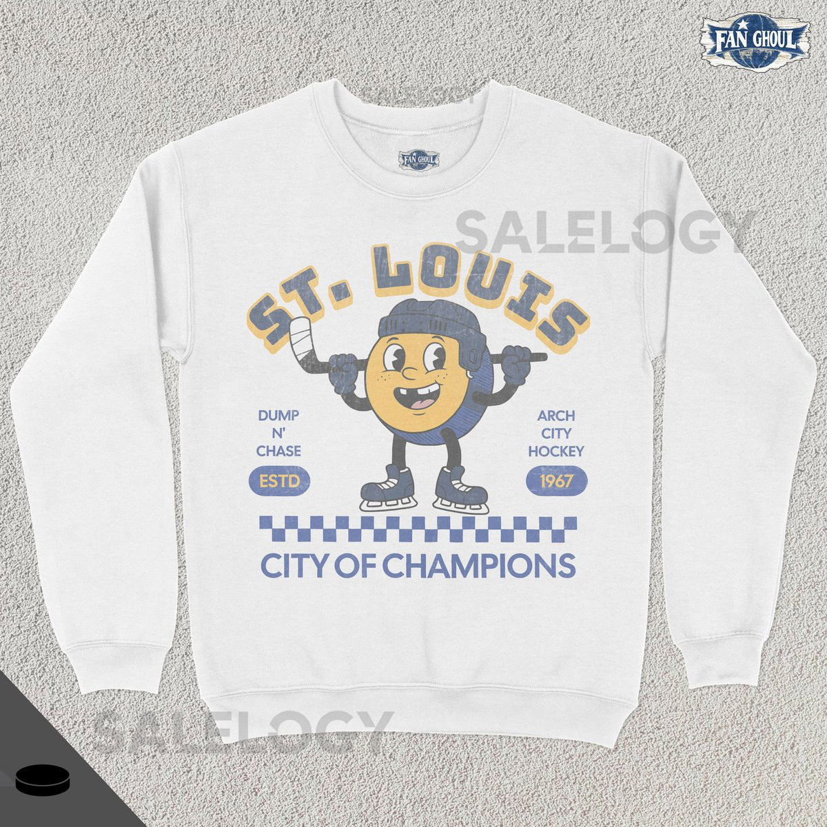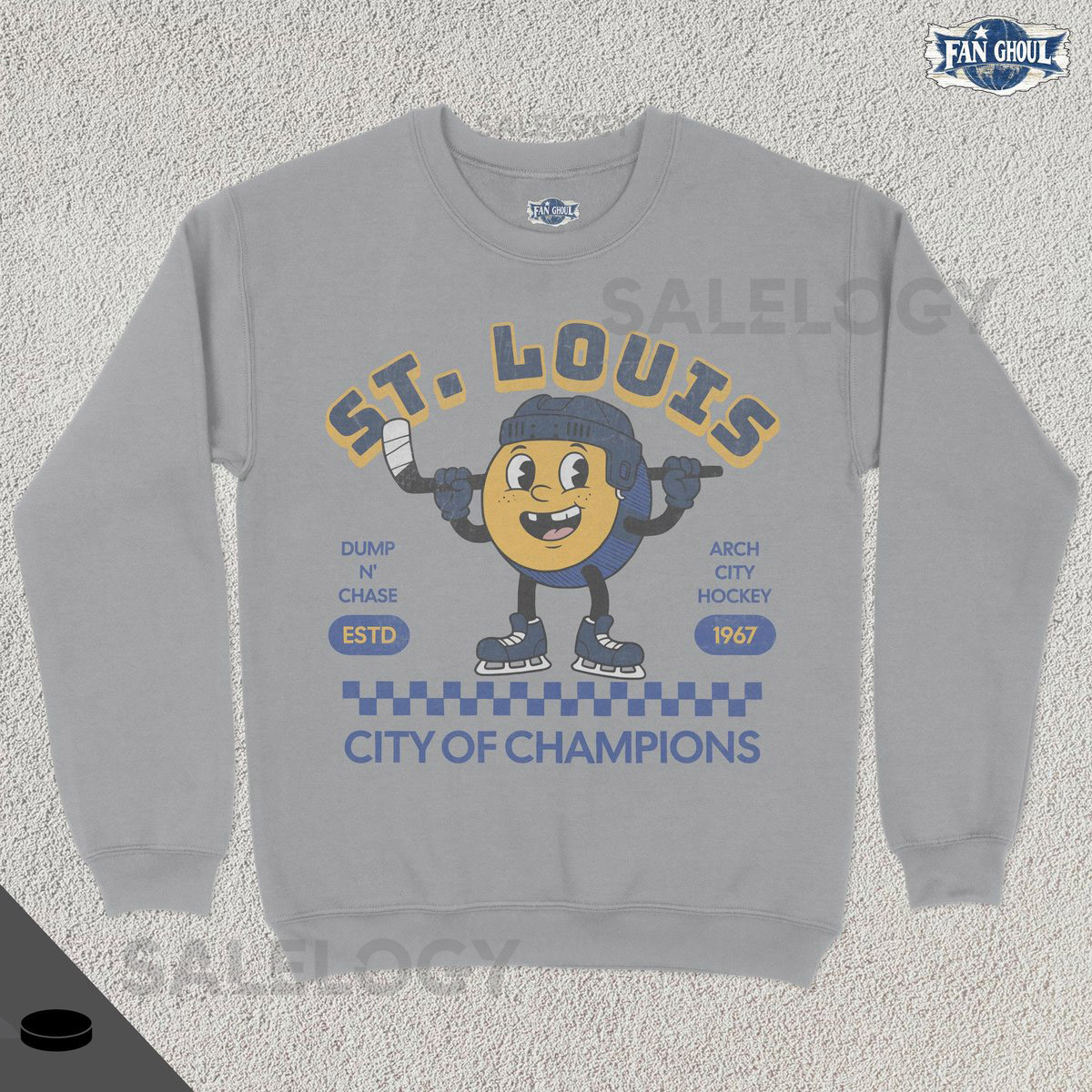 Retro Champs St Louis Hockey Sweatshirt Vintage 70s Mascot Crewneck Champions Sweater Hockey Fan Gift Stanley Cup Playoffs Blue_421