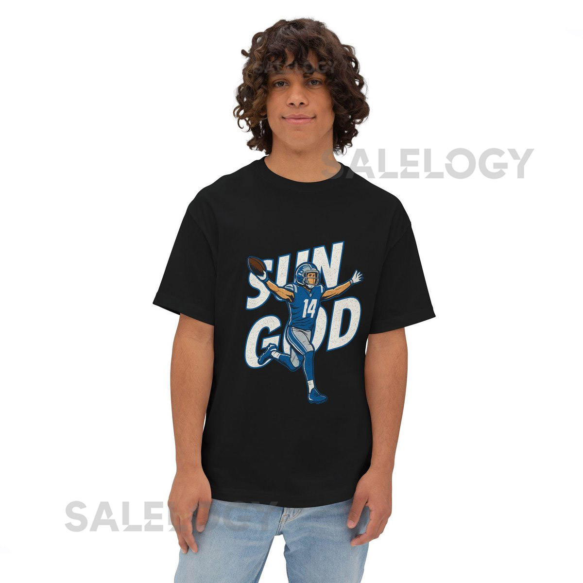 Retro Detroit Lions Amon Ra St Brown Sun God Oversized Tee Shirt Unisex Tshirt for Detroit Fans Boxy Tee Detroit Lions Apparel_636