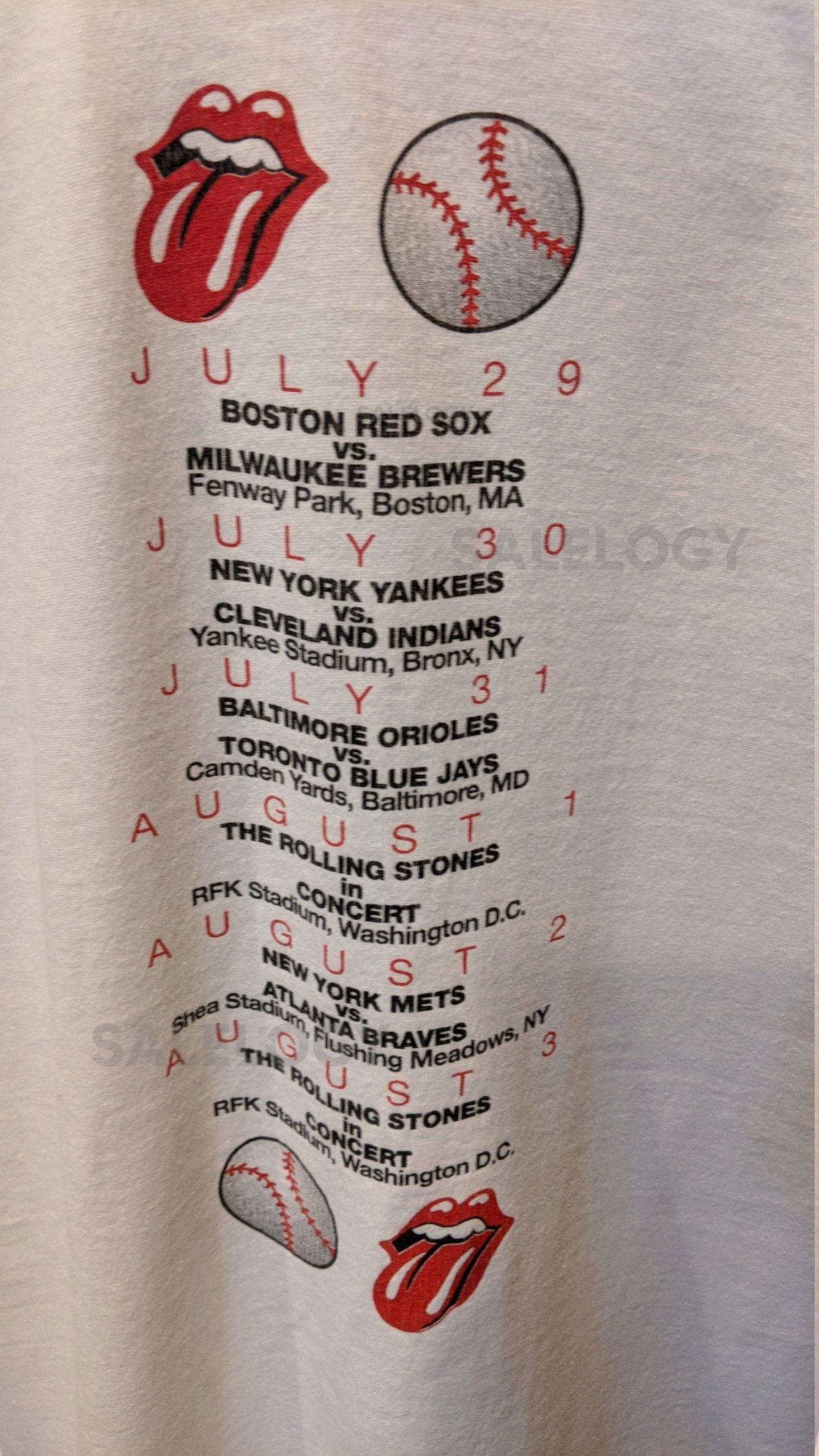 Rolling Stones Vintage Tee Stones Throw 1994 Tour Aug 1 3 Concert at RFK plus 4 major league Baseball Games Size Large_123
