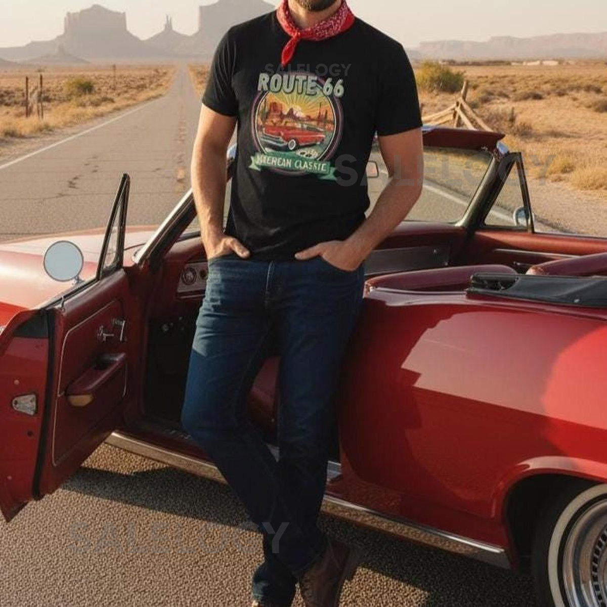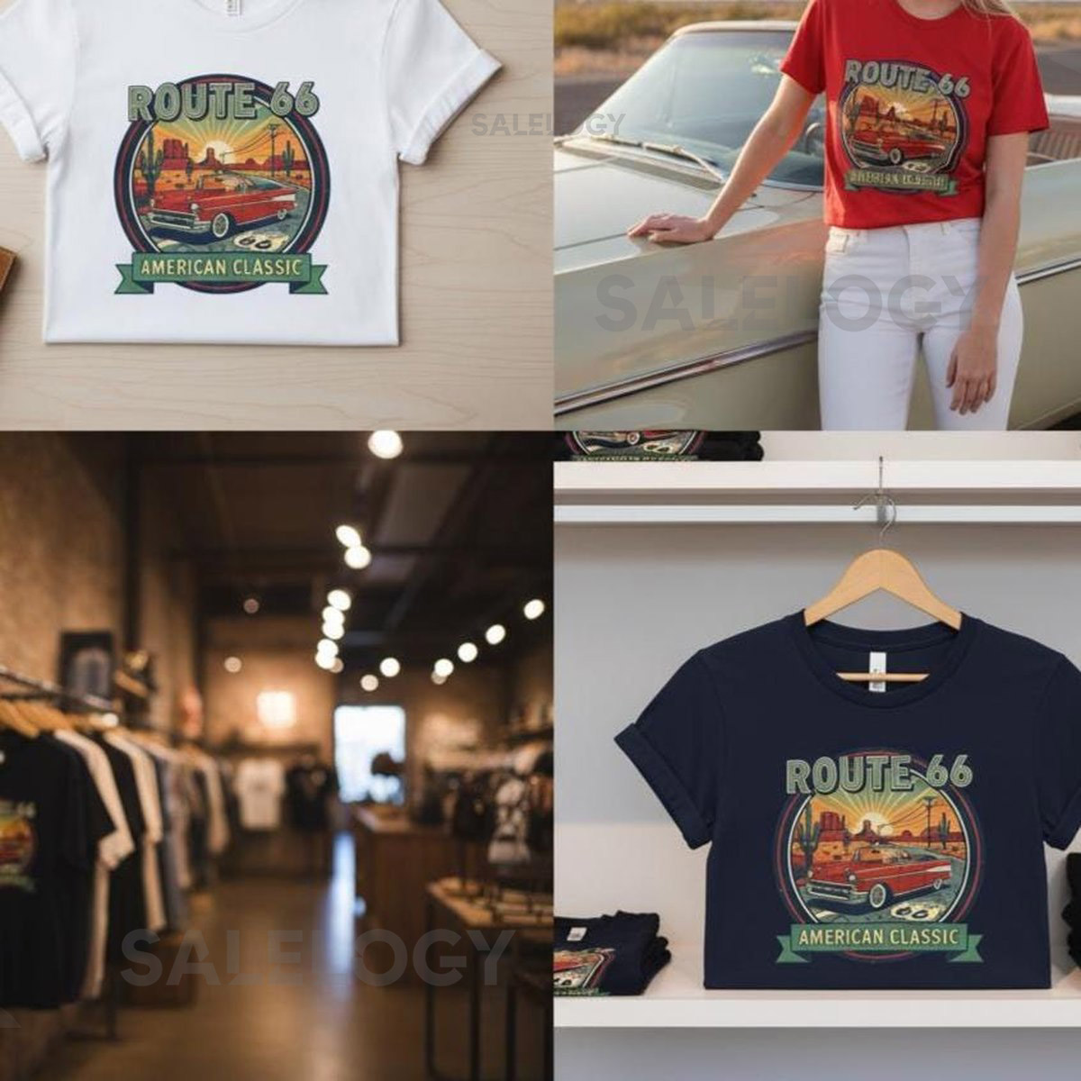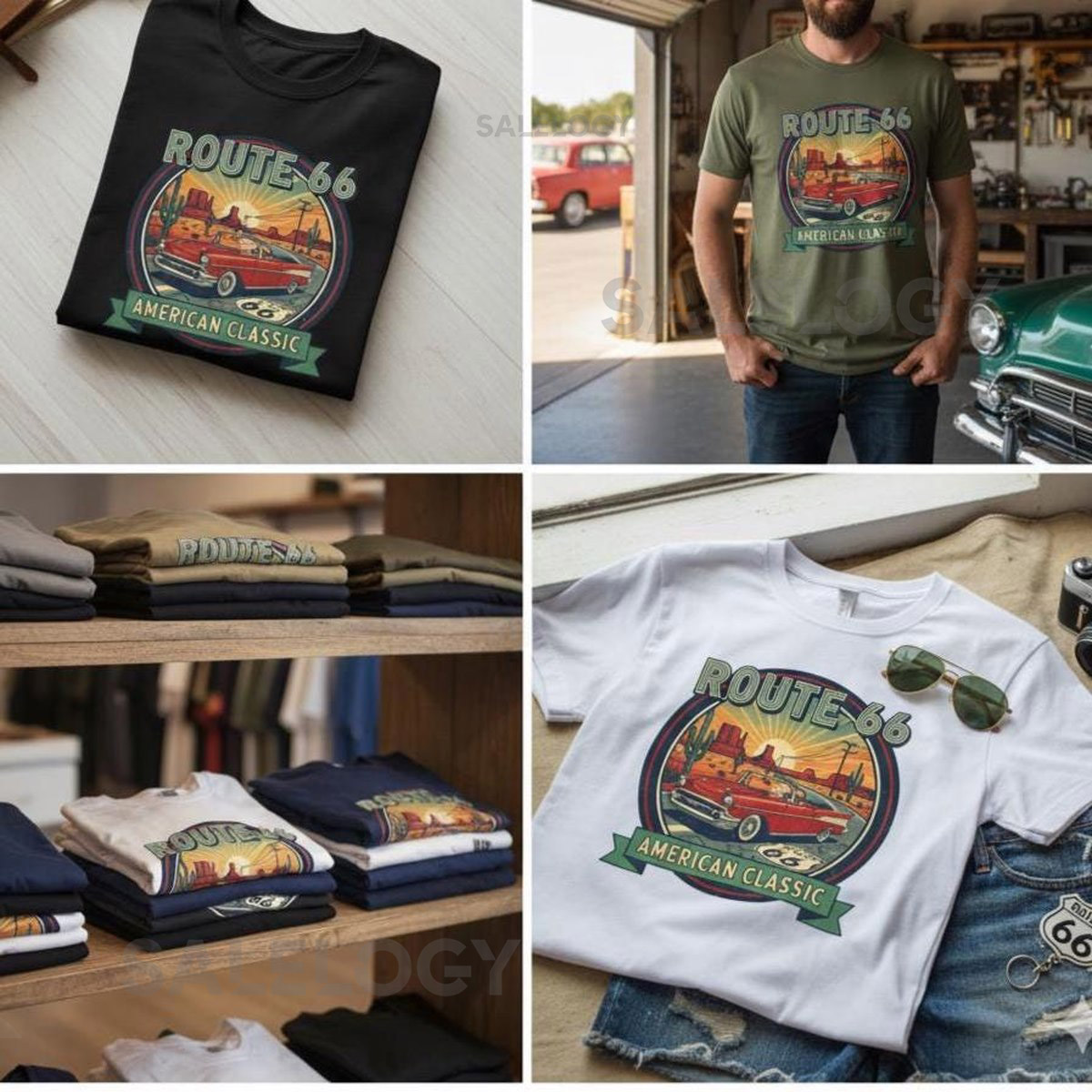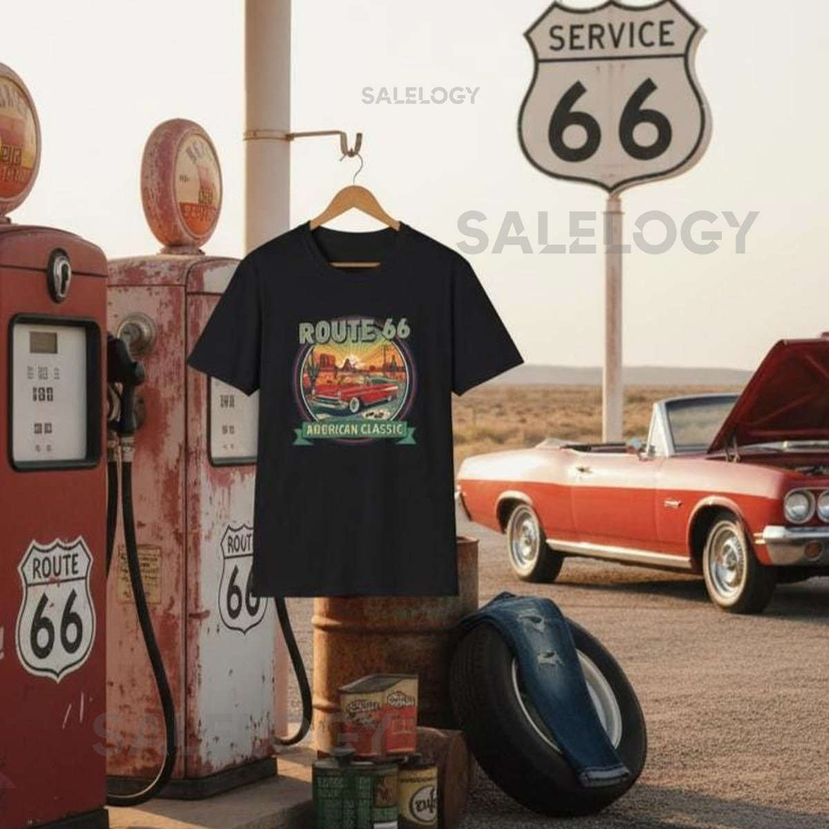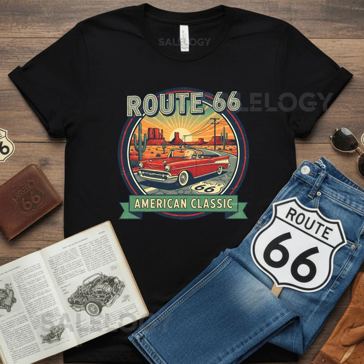 Route 66 T-Shirt Car Lover Gift for Men Vintage Graphic Tee_124