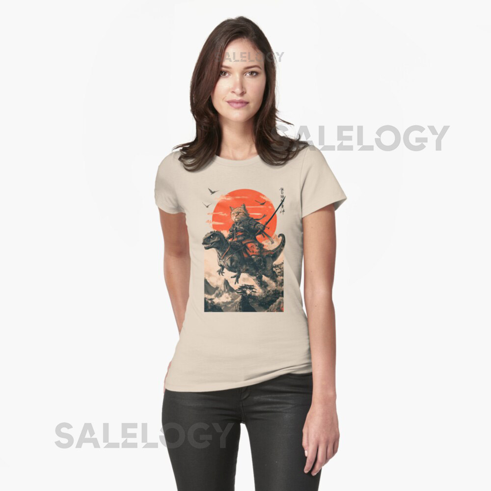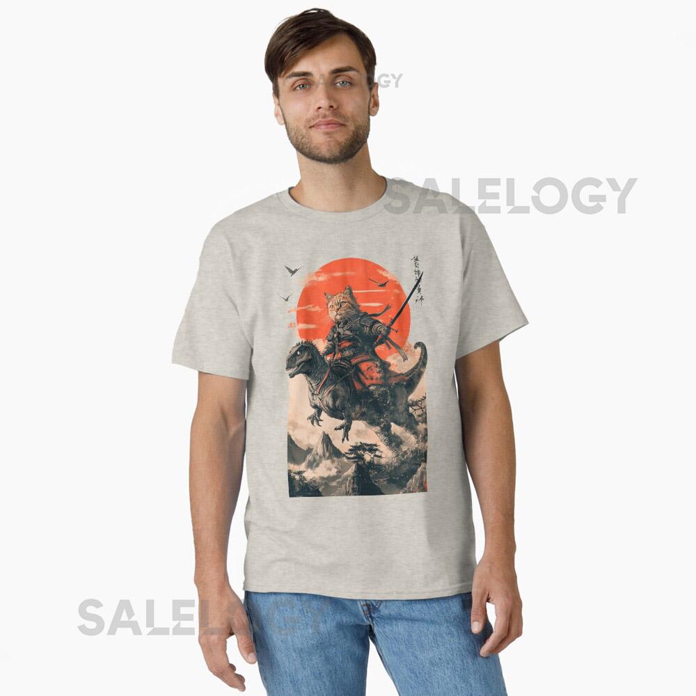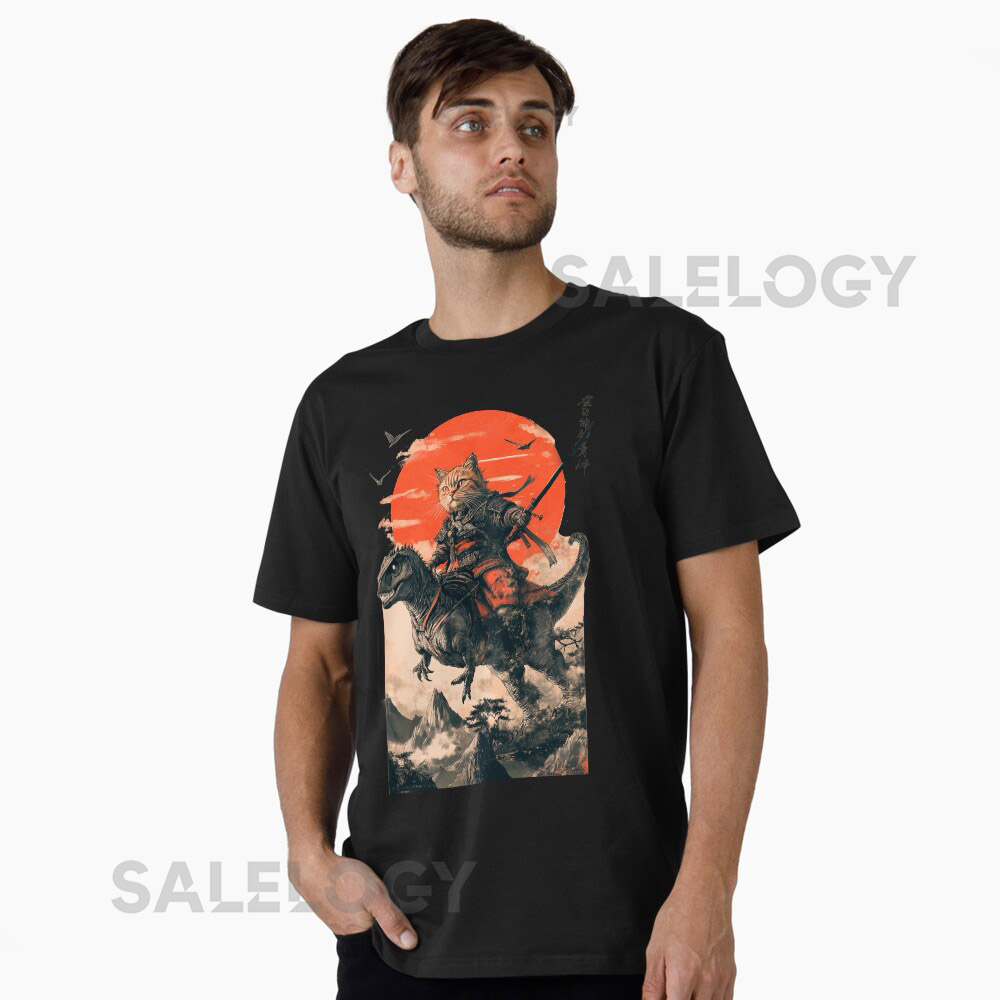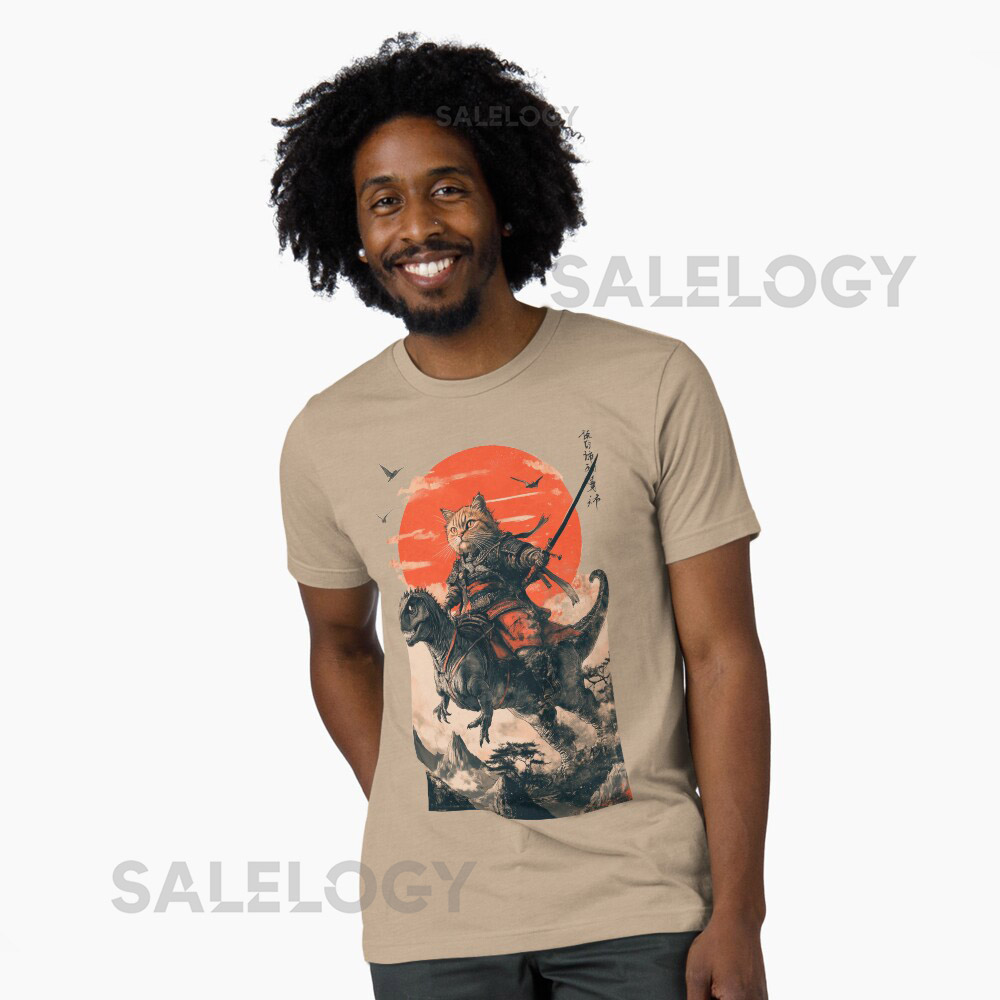 Samurai cat riding a dinosaur Essential T-Shirt f