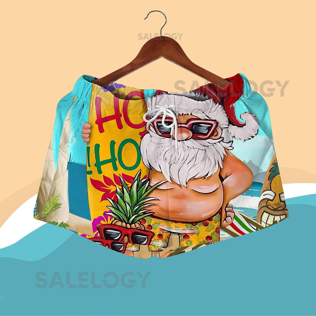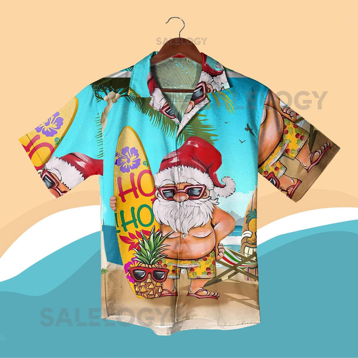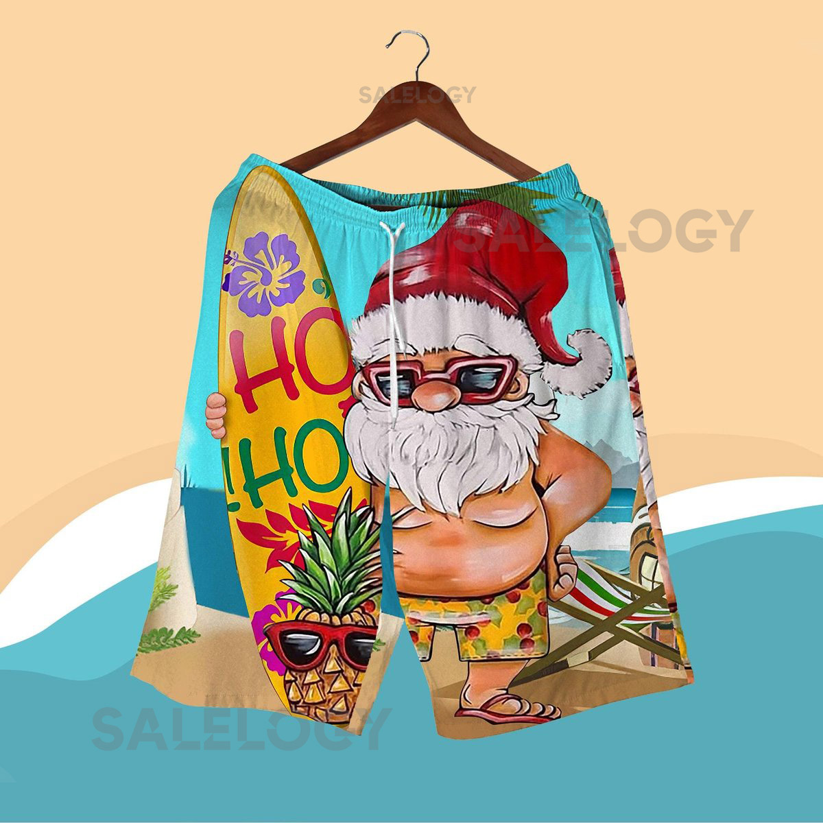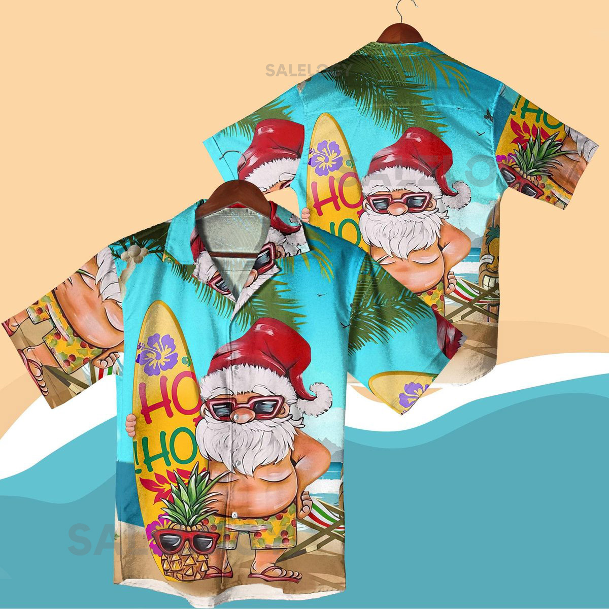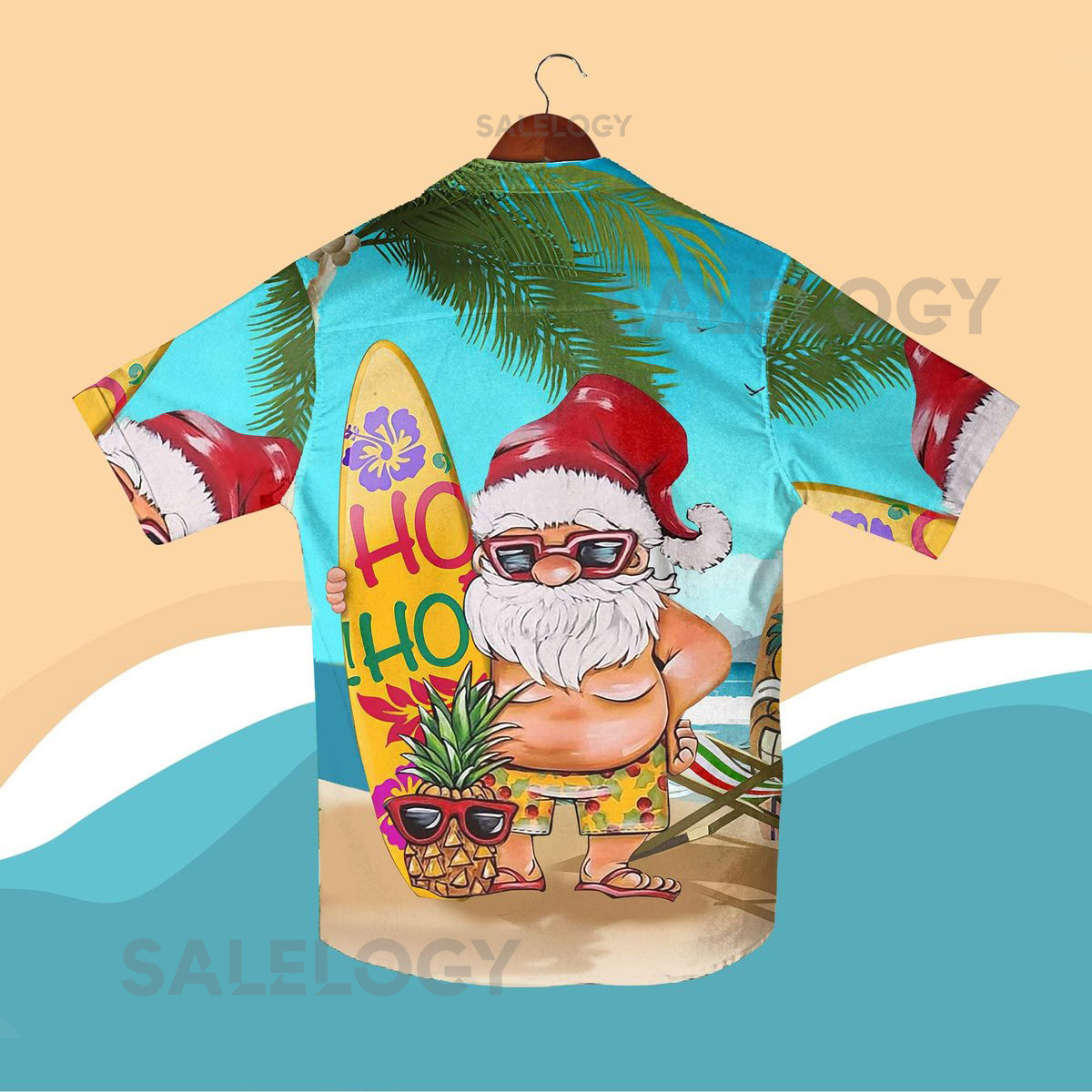 Santa Surfboard Hawaiian Shirt Funny Christmas Beach Outfit Ho Ho Ho Tropical Aloha Shirt and Shorts for Men Women Christmas Shirt Gifts_234