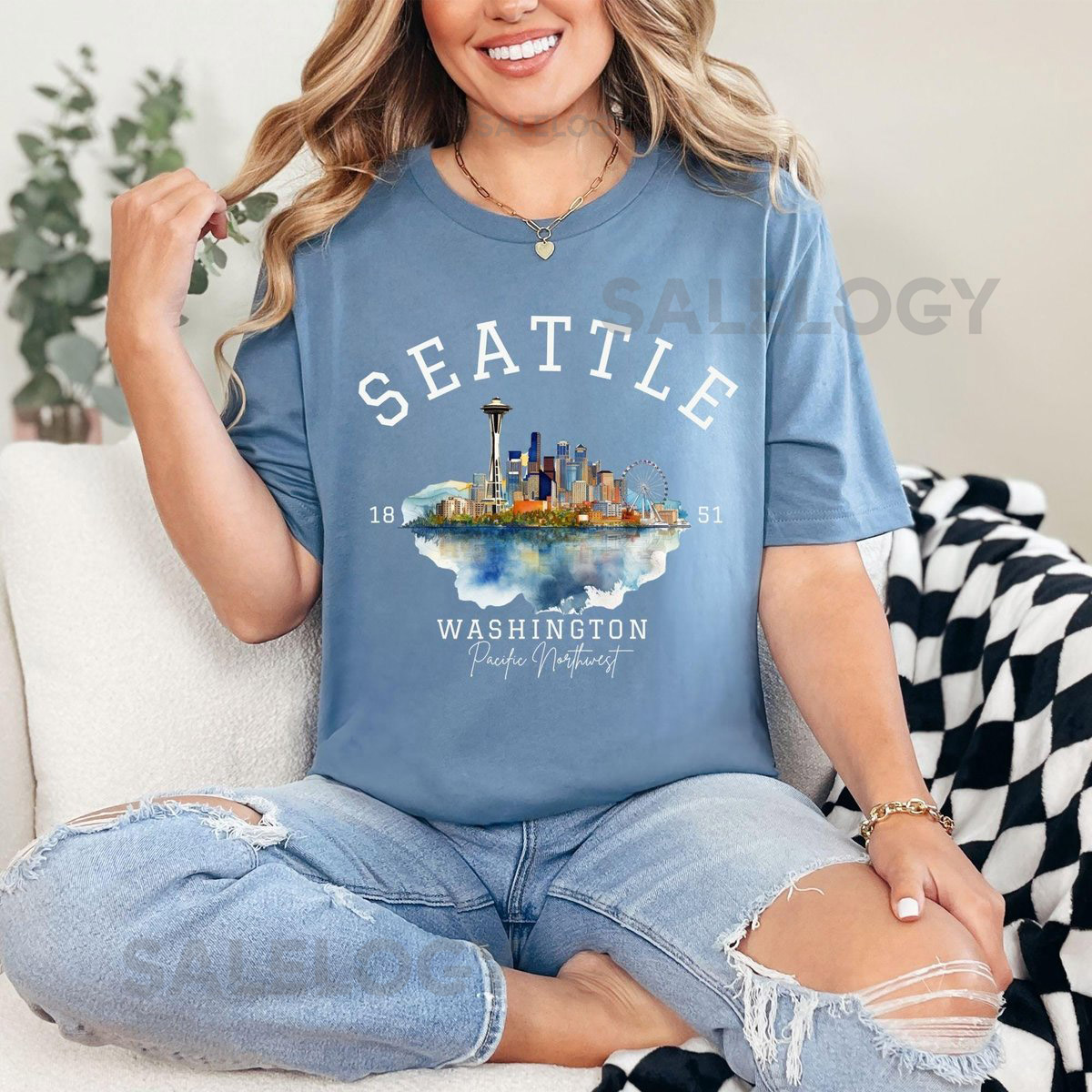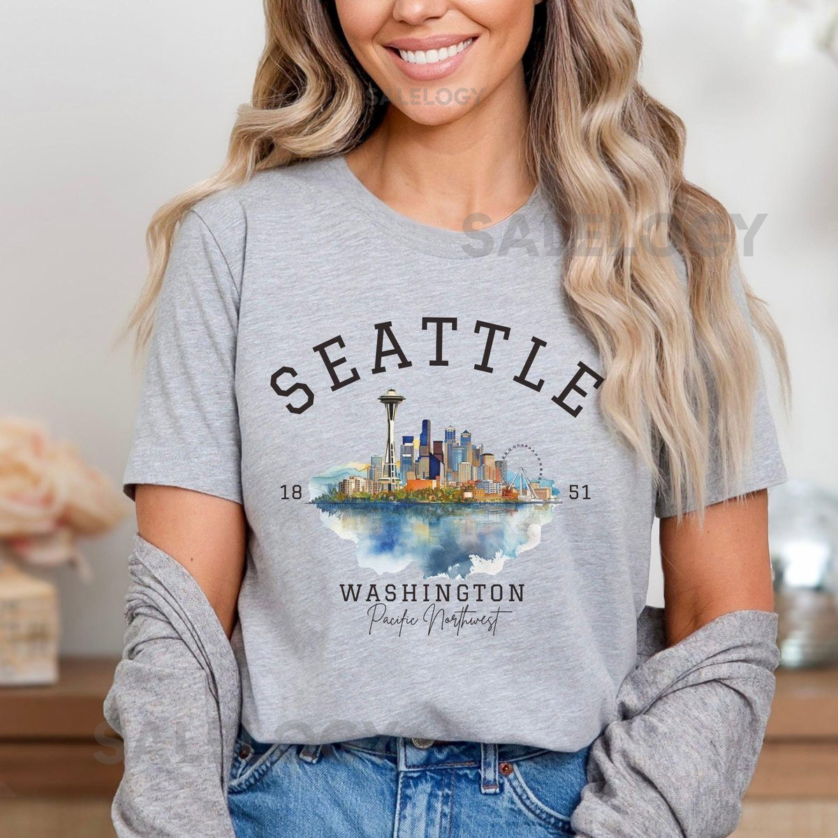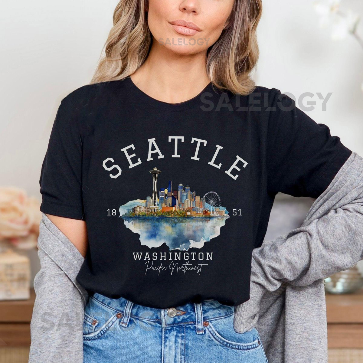 Seattle Skyline Retro T-Shirt Iconic Space Needle Travel Shirt PNW Cityscape Crewneck Seattle Washington Landmark Tee Seattle Gifts_401