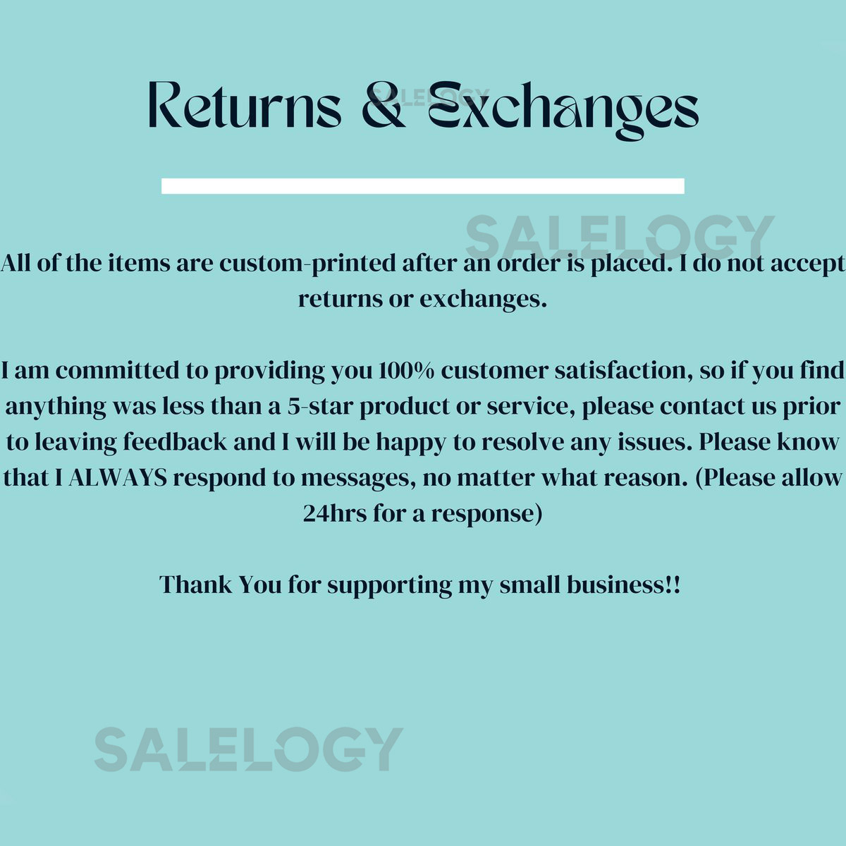 We make every effort to guarantee that each order is produced precisely and to a high standard. However, because our products are produced to order, errors could occasionally happen. We accept returns and exchanges in the circumstances listed below.
