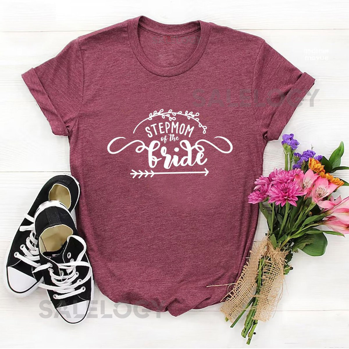 Stepmom of the Bride T-Shirt – Customized Graphic Women Tee – Casual Wear – Wedding Moments – Blended Family – Special Wedding Role_952