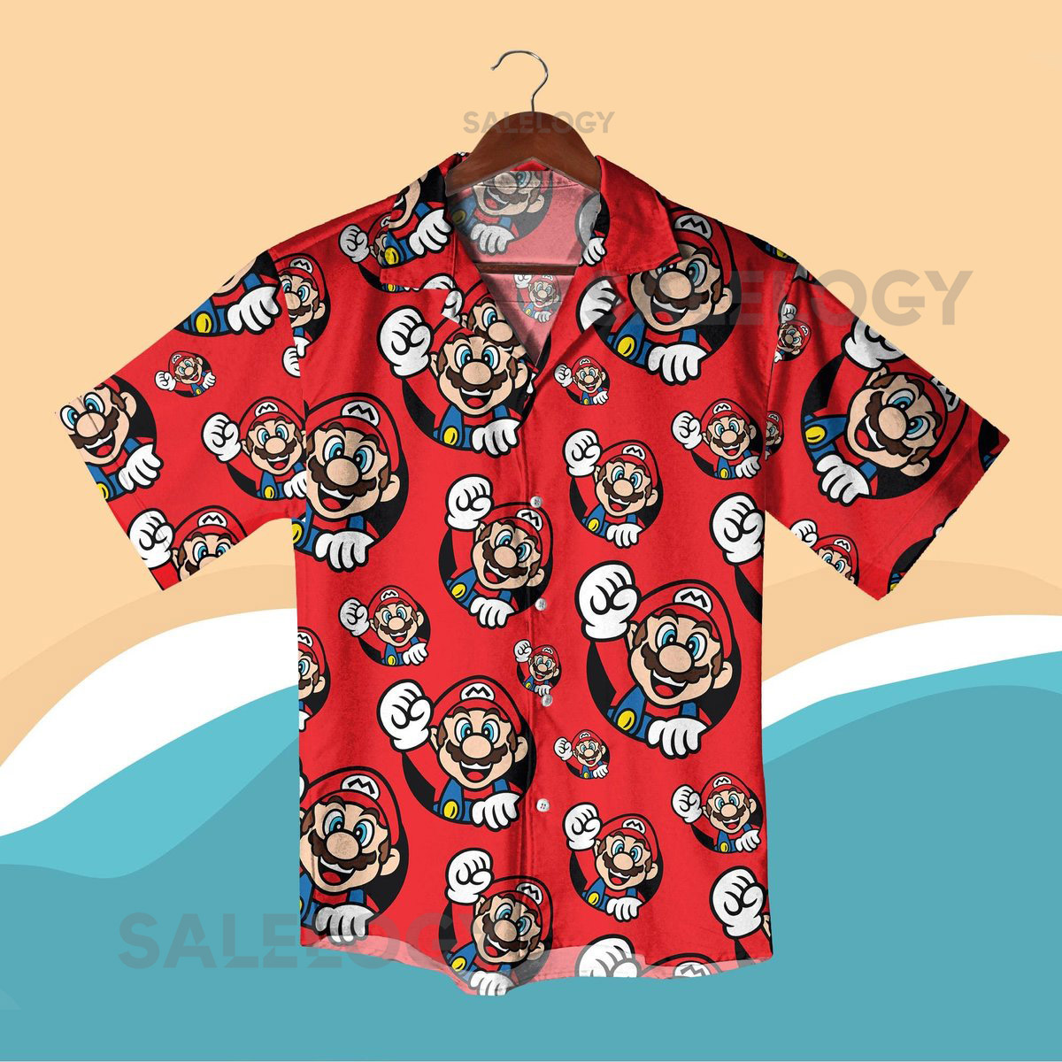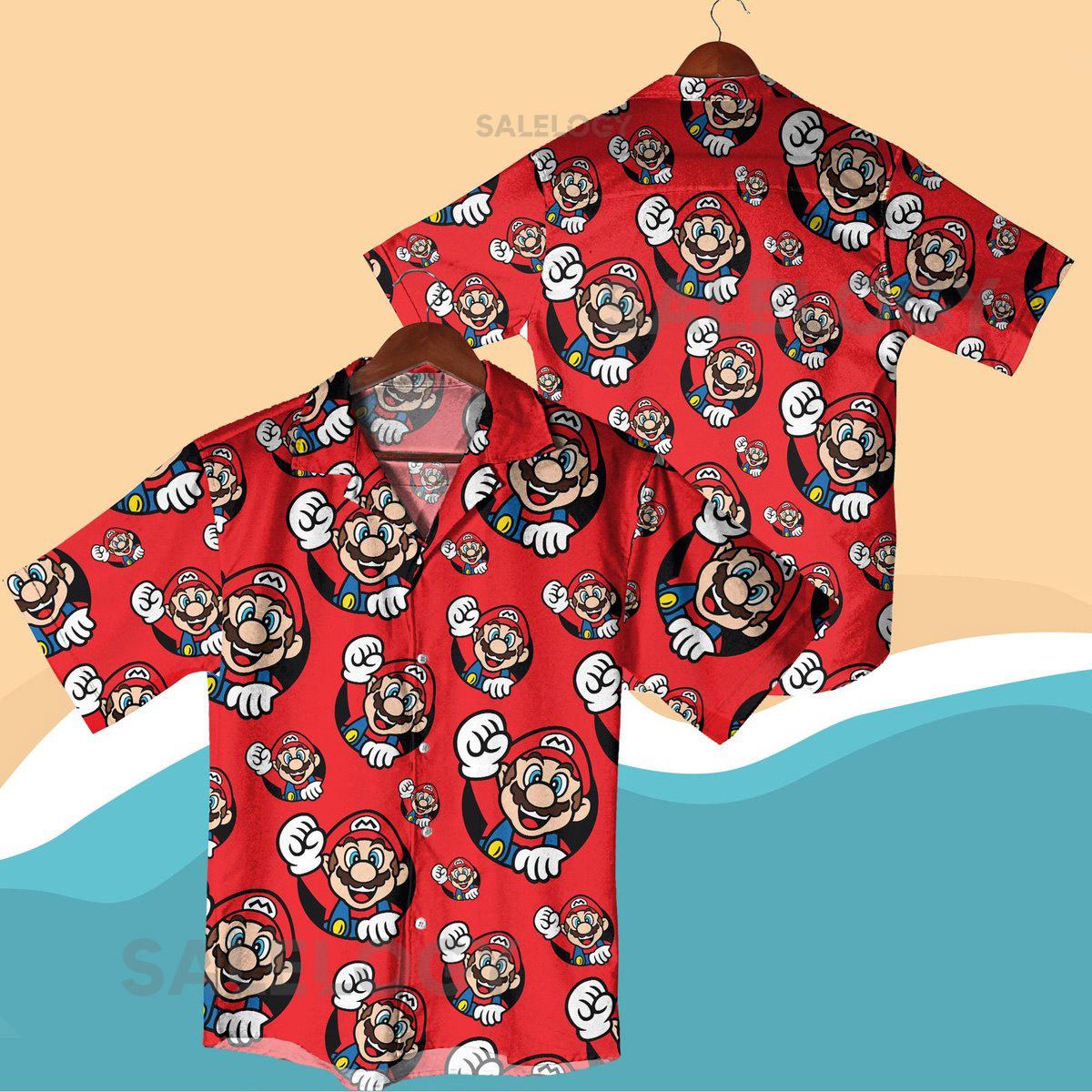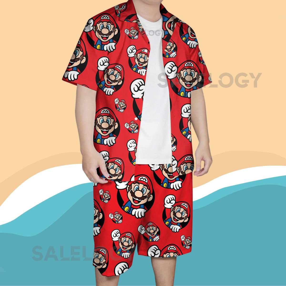 Super Mario Halloween Hawaiian Shirt Set Funny Gamer Costume Red Cartoon Aloha Shirt Nintendo Cosplay Vacation Outfit Hawaiian Shirt Men_267