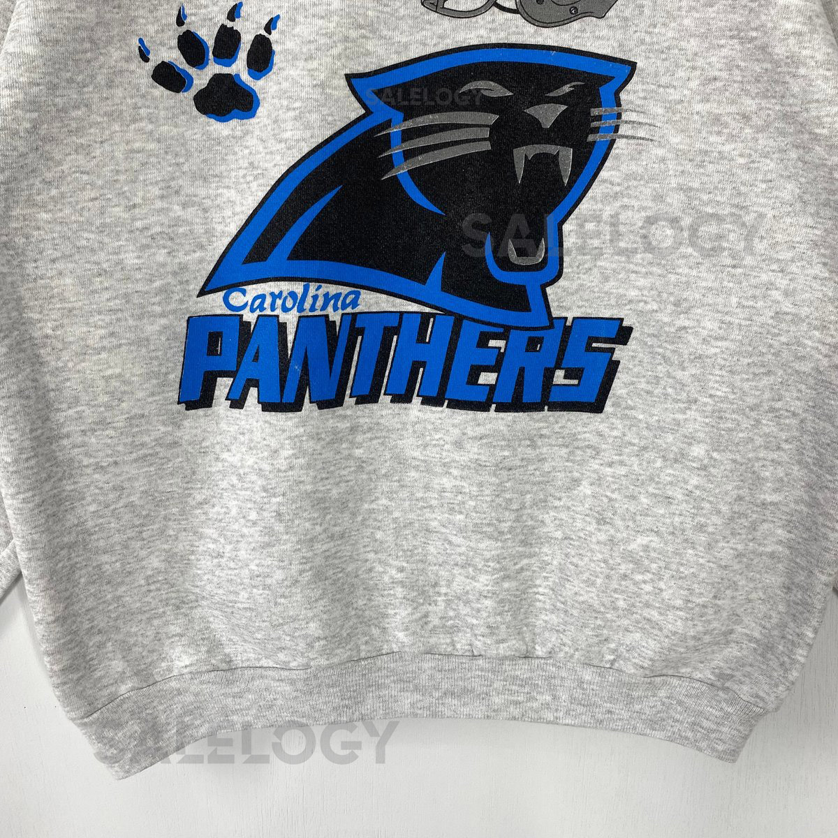 Vintage 90s Carolina Panthers Sweatshirt Crewneck Pullover Sportswear NFL Carolina Panthers Print Logo Grey Medium_939