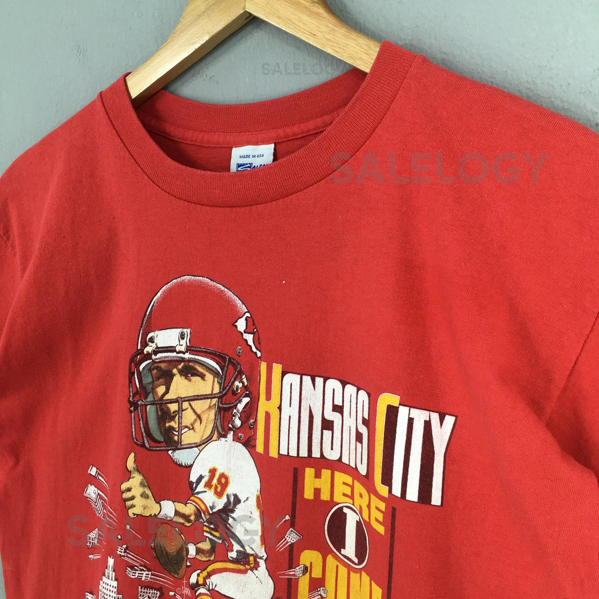 Vintage 90s Kansas City Chiefs NFL Red Tshirt Large Kansas City Chiefs Here I Come Joe Montana Printed Shirt KC Chiefs Football Salem Tee L_785