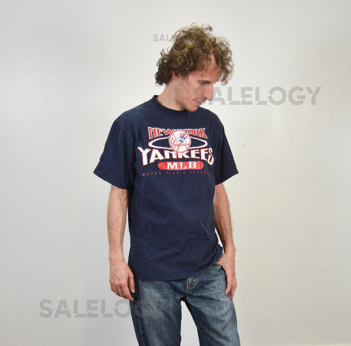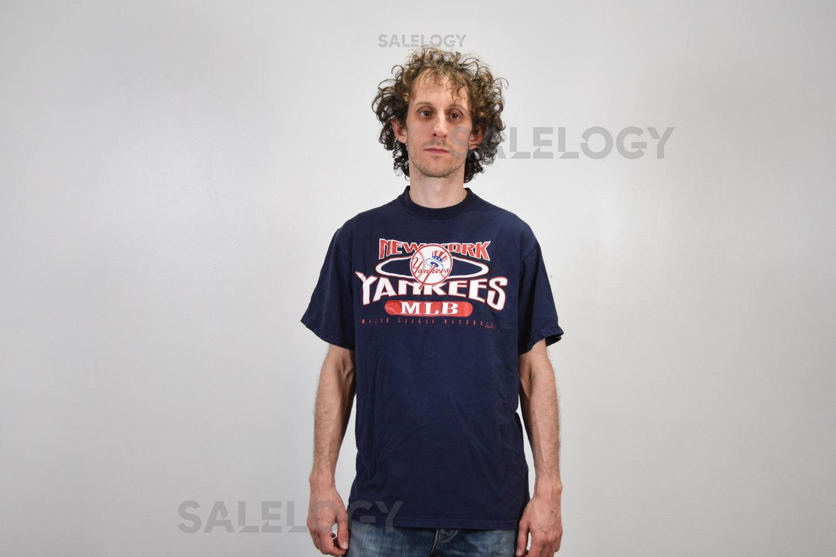 Vintage 90s Men’s New York Yankees T Shirt Navy Blue Baseball Shirt Size L_434