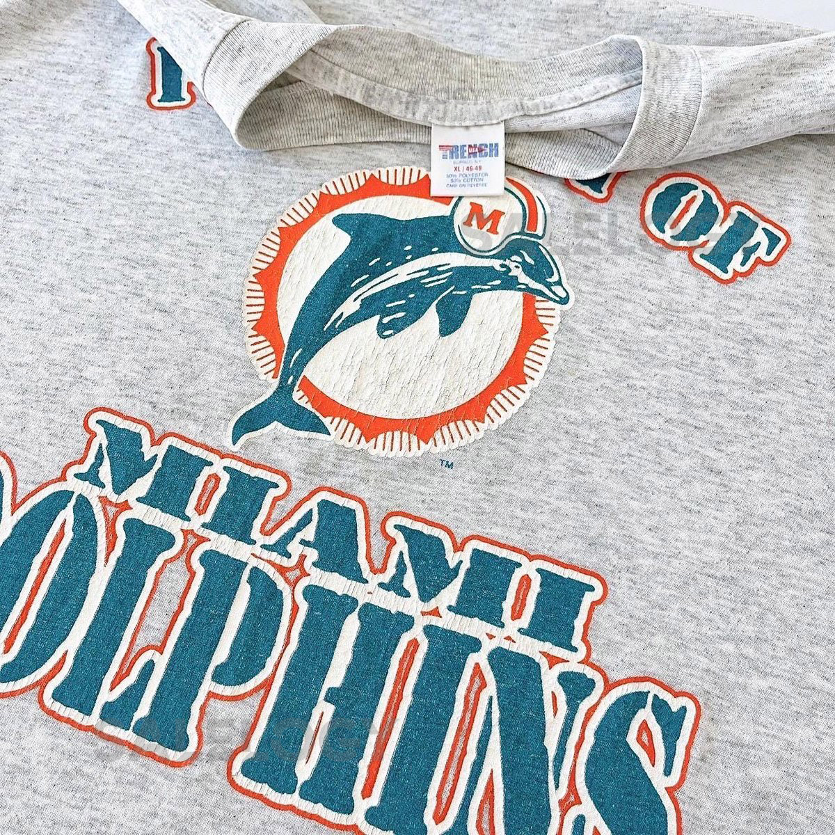 Vintage 90s Miami Dolphins NFL Football vintage Trench gray t-shirt XL_618