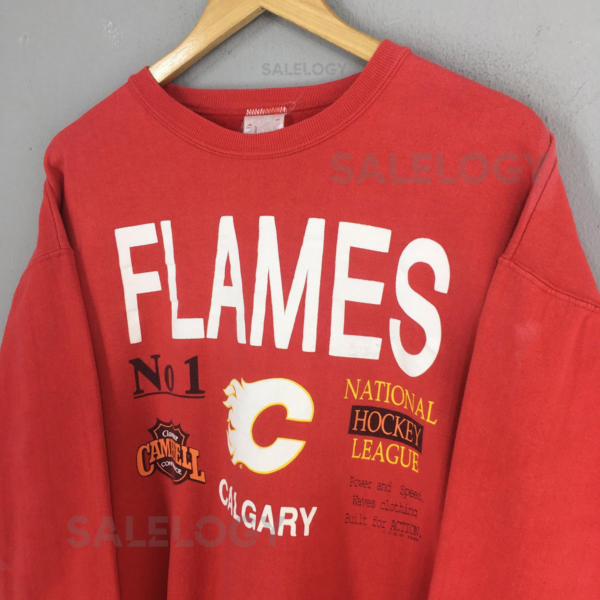 Vintage Calgary Flames NHL Red Sweatshirt Large Calgary Flames Printed Logo Crewneck Calgary Flames Clarence Campbell Conference Sweater L_108