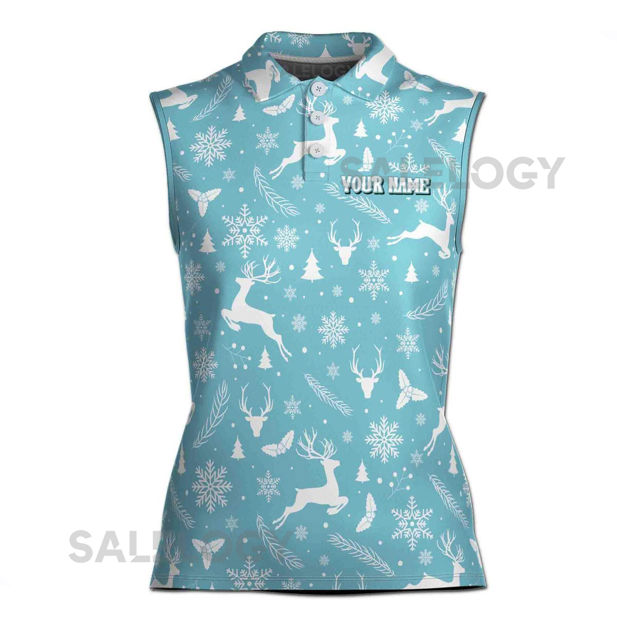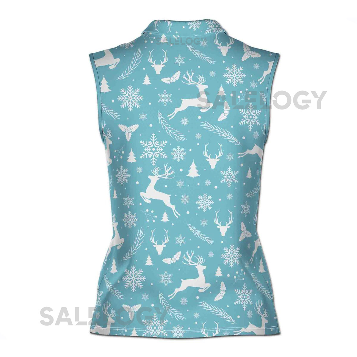 Vintage Retro Blue Christmas Pattern Golf Gift Women Sleeveless Polo XS-4XL_610