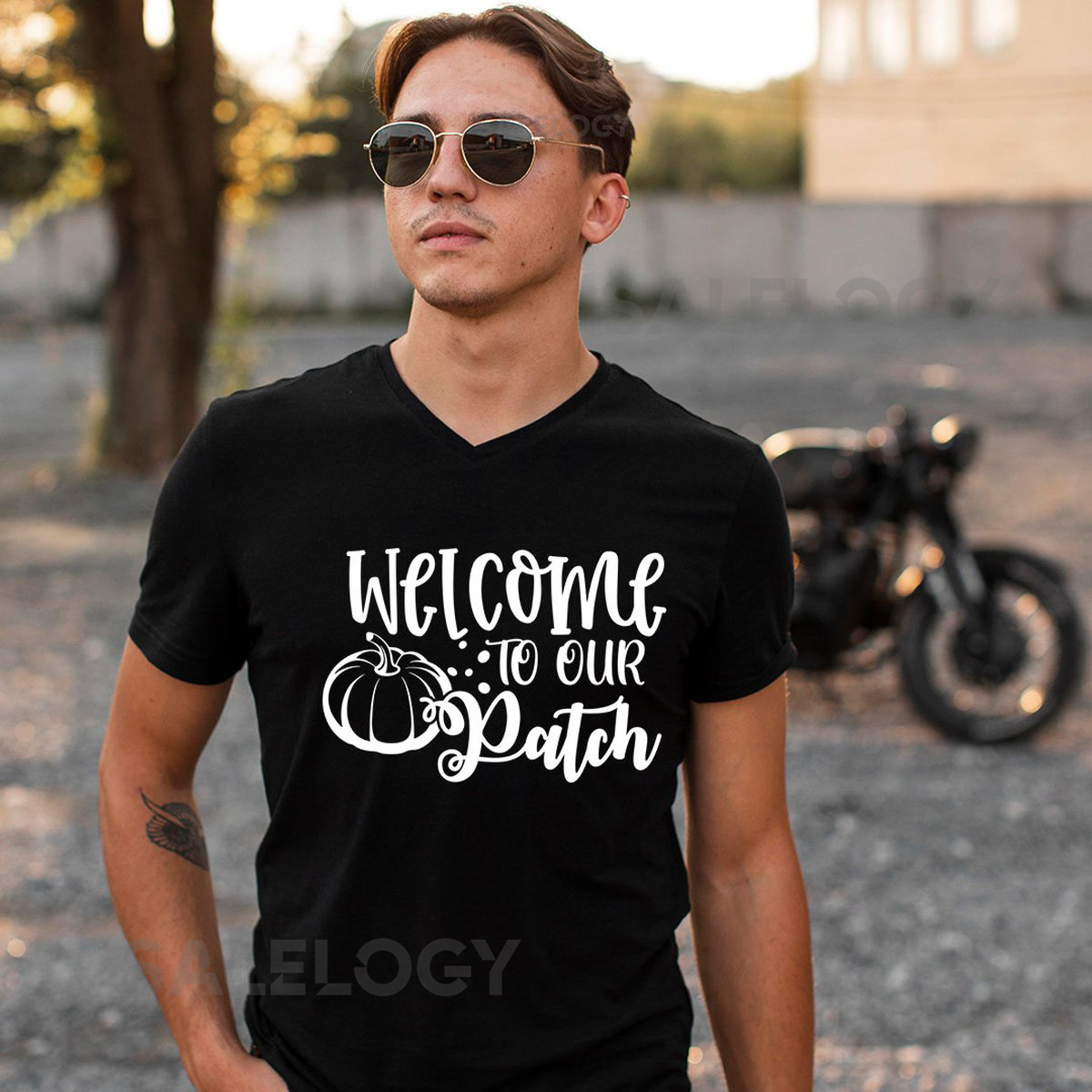 Welcome To Our Patch T-Shirt – Customized Graphic Unisex Tee – Fall Season – Chilly Nights – Fall Delights – Seasonal Joy – Pumpkin_1187